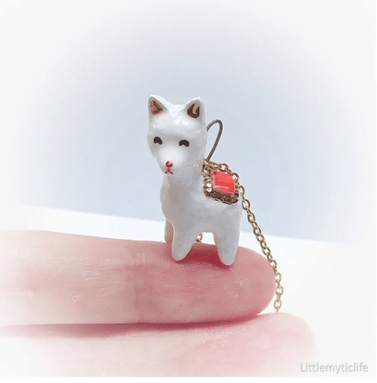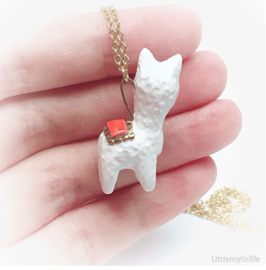 _Alpaca llama ceramic necklace is made of low fire earthen clay and Duncan underglaze for ceramic. In order to achieve the final looking pieces, I put a lot of time and care into sculpting, glazing, and firing my pieces at the right temperature. Delicate 22k gold details are painted by hand in these pieces for elegant and shiny looking. All my pieces are very small (about as big as your thumb), please handle them with care and I recommend to take off your necklace while sleeping and showering.