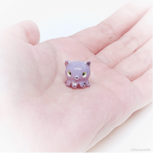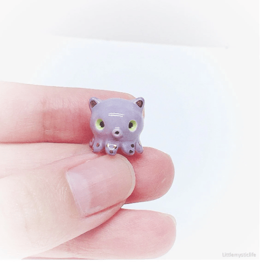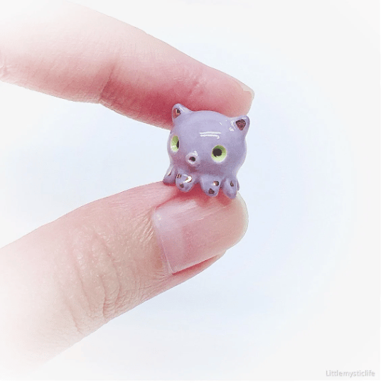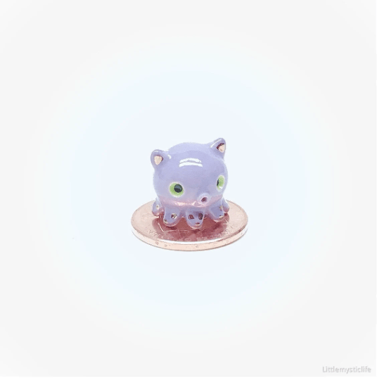 Angry dumbo octopus ceramic figurine is made of low fire earthen clay and Duncan underglaze for ceramic. In order to achieve the final looking pieces, I put a lot of time and care into sculpting, glazing, and firing my pieces at the right temperature. Delicate 22k gold details are painted by hand in these pieces for elegant and shiny looking. All my pieces are very small (about as big as your thumb), please handle them with care.
