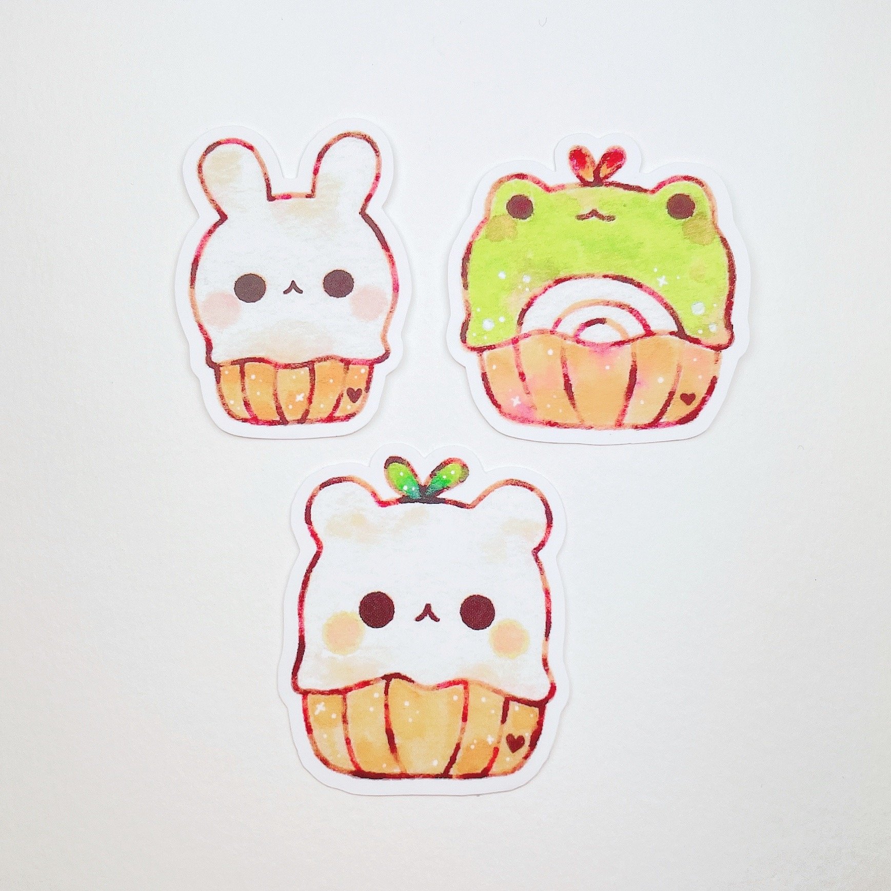 _Pick your design: frog cupcake sticker, bear cupcake sticker, and bunny cupcake sticker_Matte finish and waterproof.