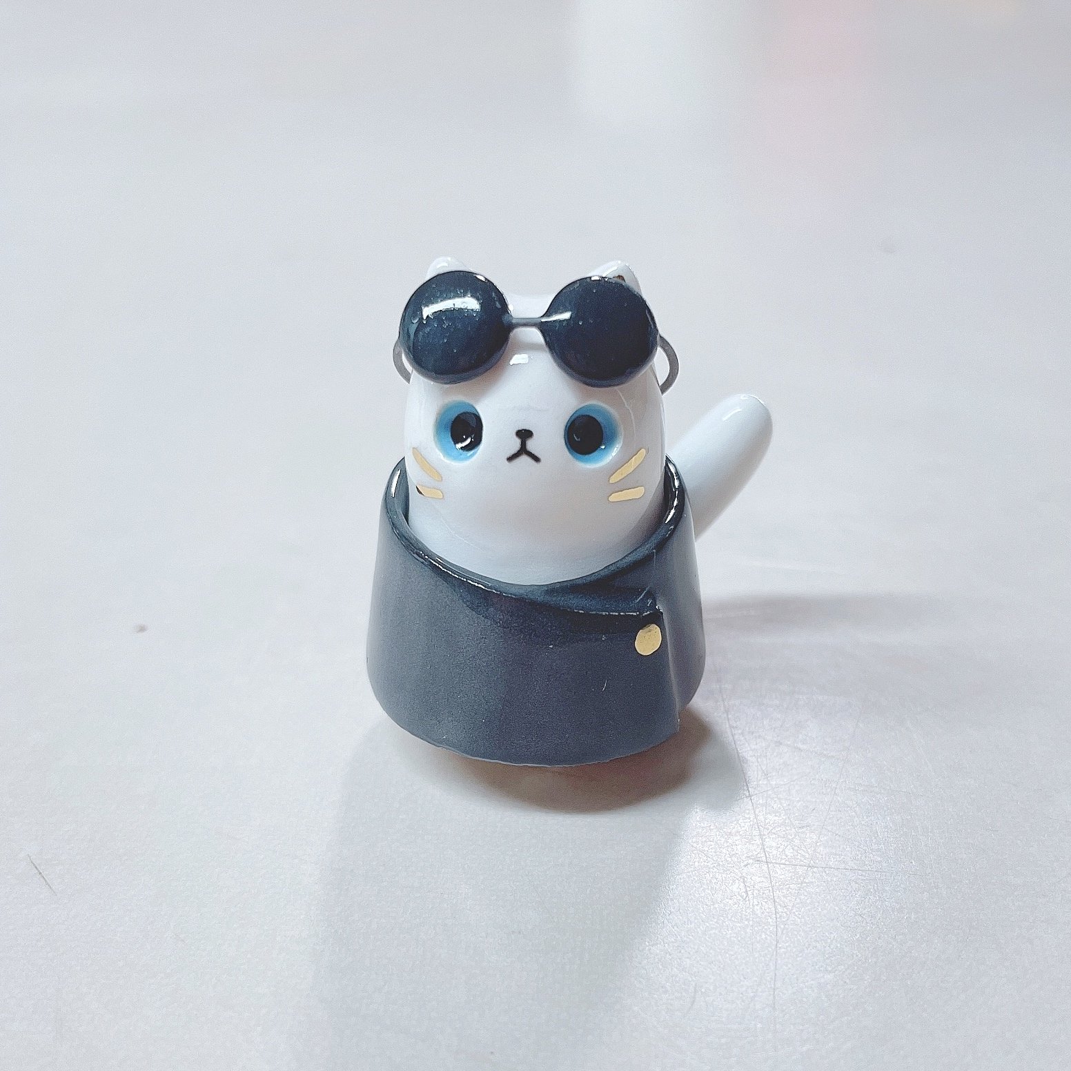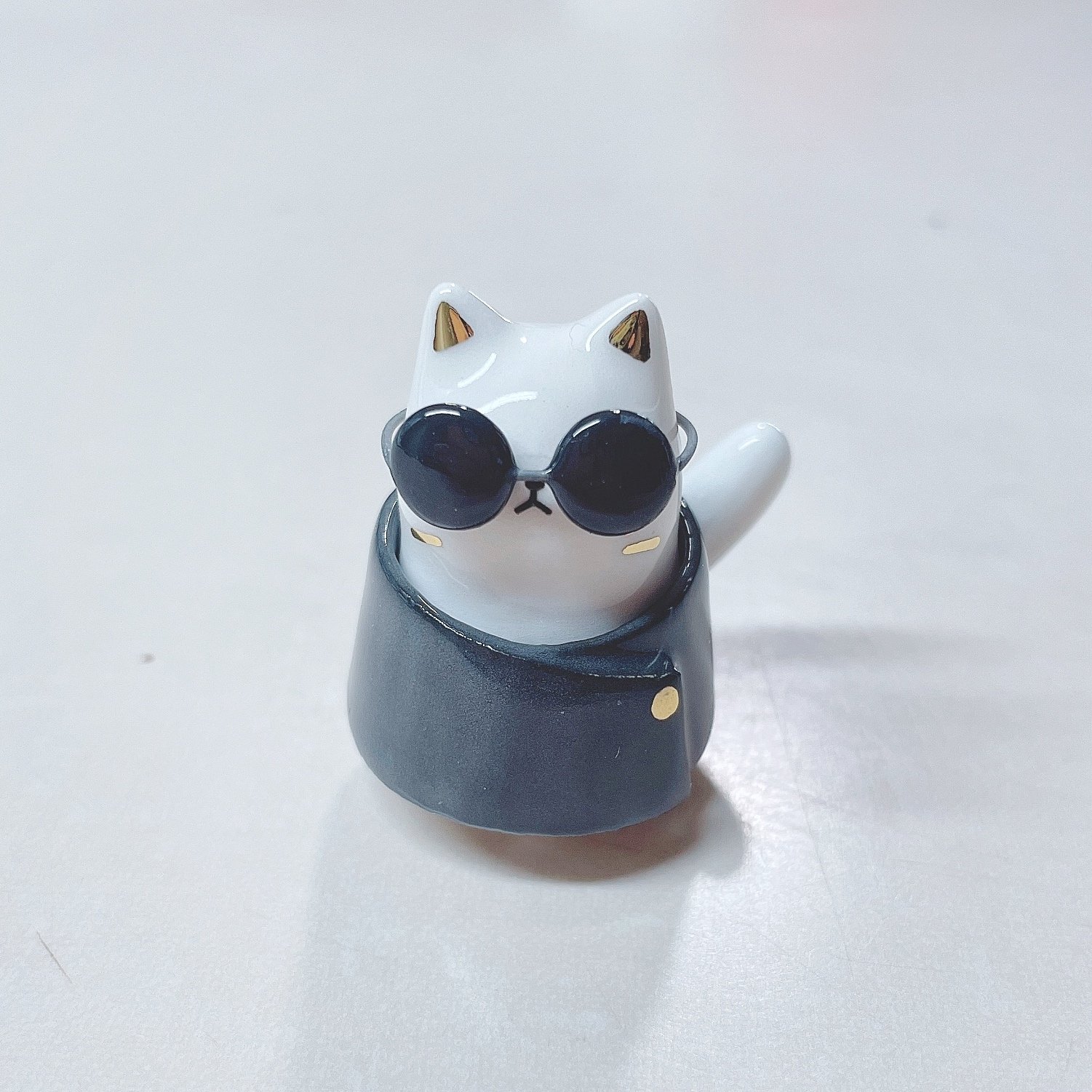 GLASSES ARE FRAGILE PLEASE HANDLE THEM WITH EXTRA CARE. White cat with Gojo outfit ceramic figurine is made of low fire earthen clay and Duncan underglaze for ceramic. In order to achieve the final looking pieces, I put a lot of time and care into sculpting, glazing, and firing my pieces at the right temperature. Delicate 22k gold details are painted by hand in these pieces for elegant and shiny looking. Please handle them with care.