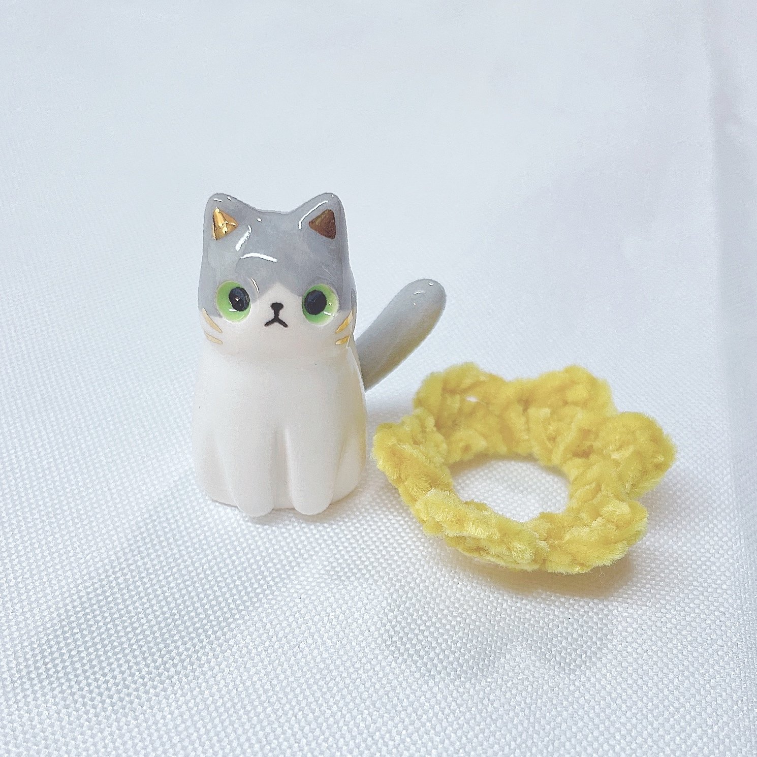 B graded with discount price crochet flower gray and white cat ceramic figurine