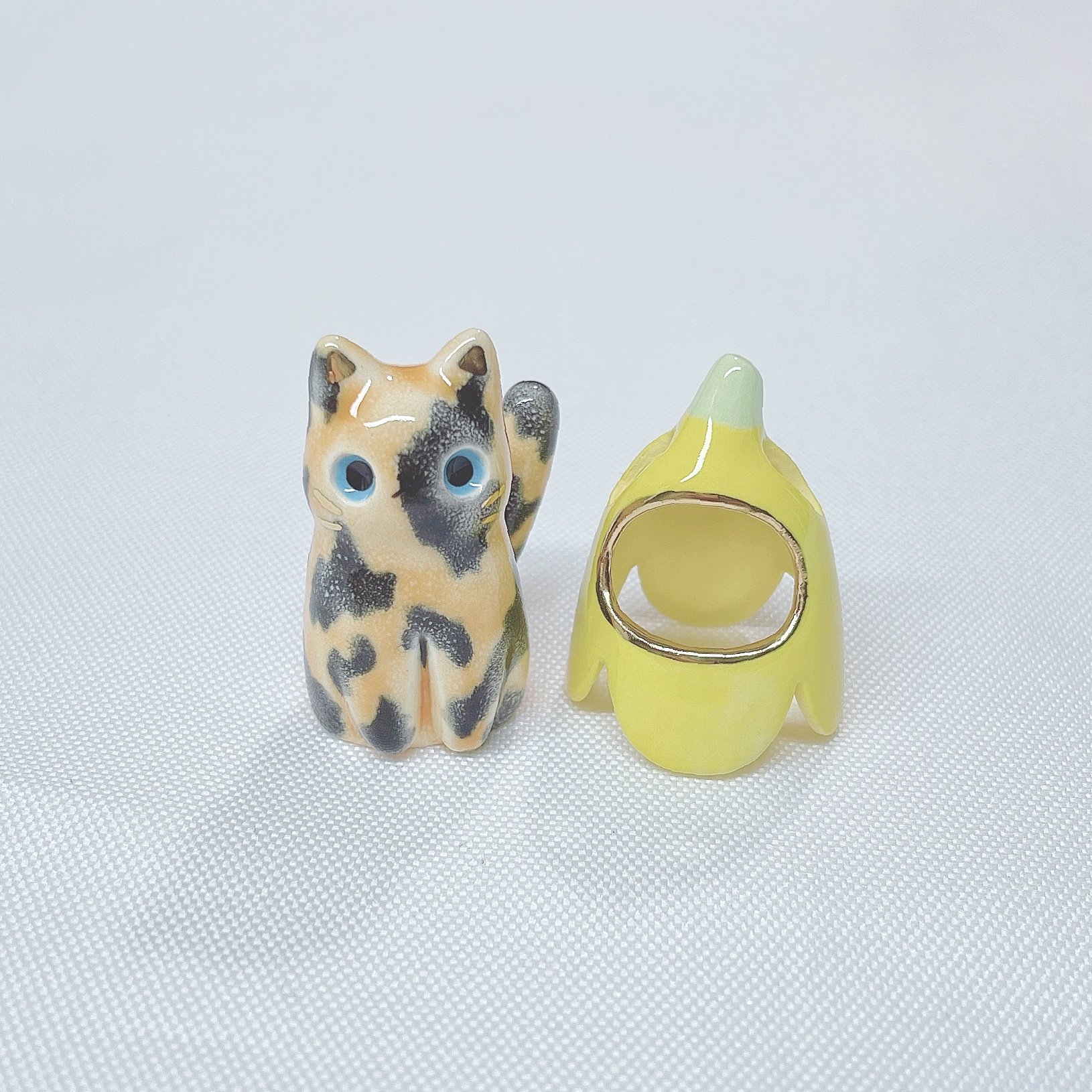Banana tortie cat ceramic figurine is made of low fire earthen clay and Duncan underglaze for ceramic. In order to achieve the final looking pieces, I put a lot of time and care into sculpting, glazing, and firing my pieces at the right temperature. Delicate 22k gold details are painted by hand in these pieces for elegant and shiny looking. Please handle them with care.