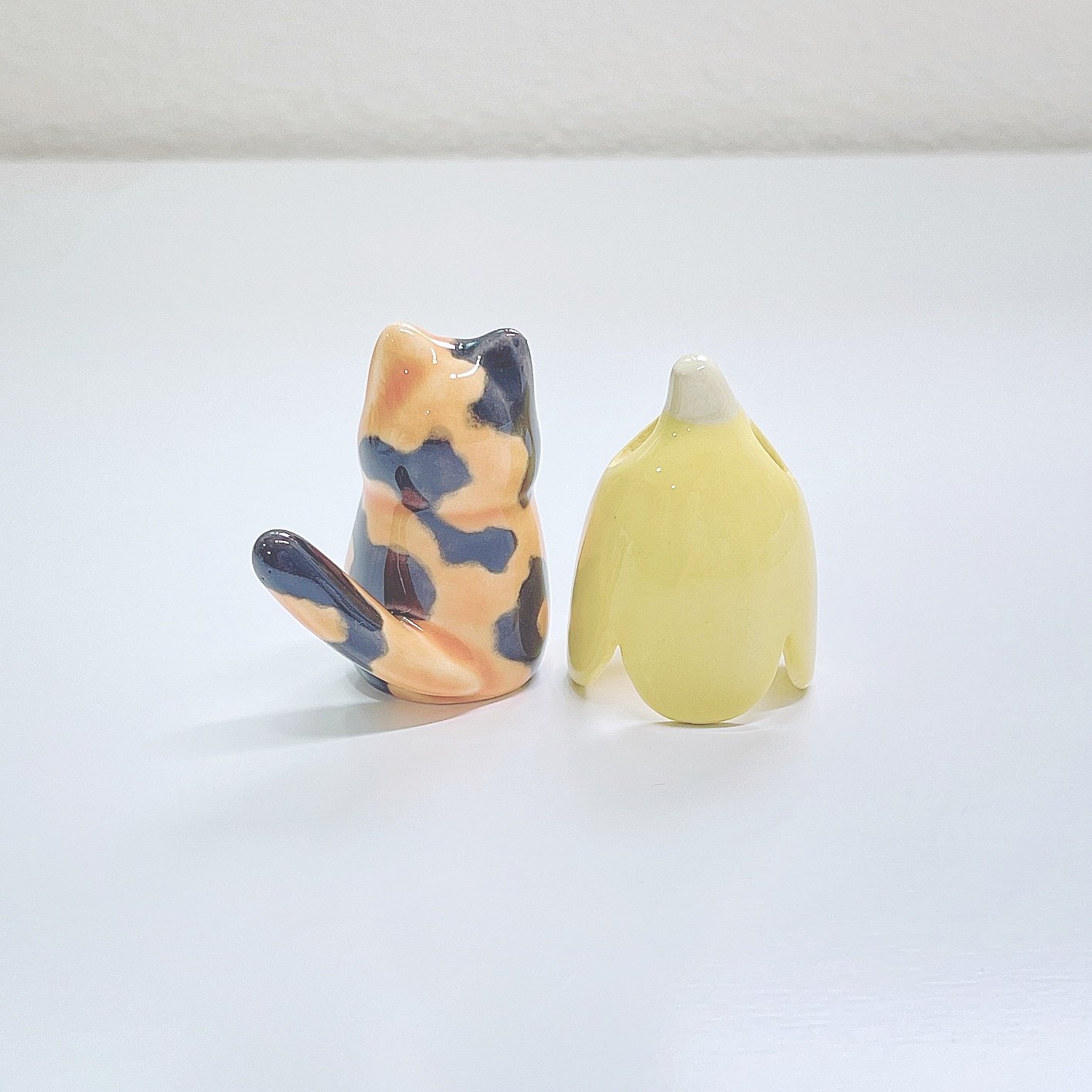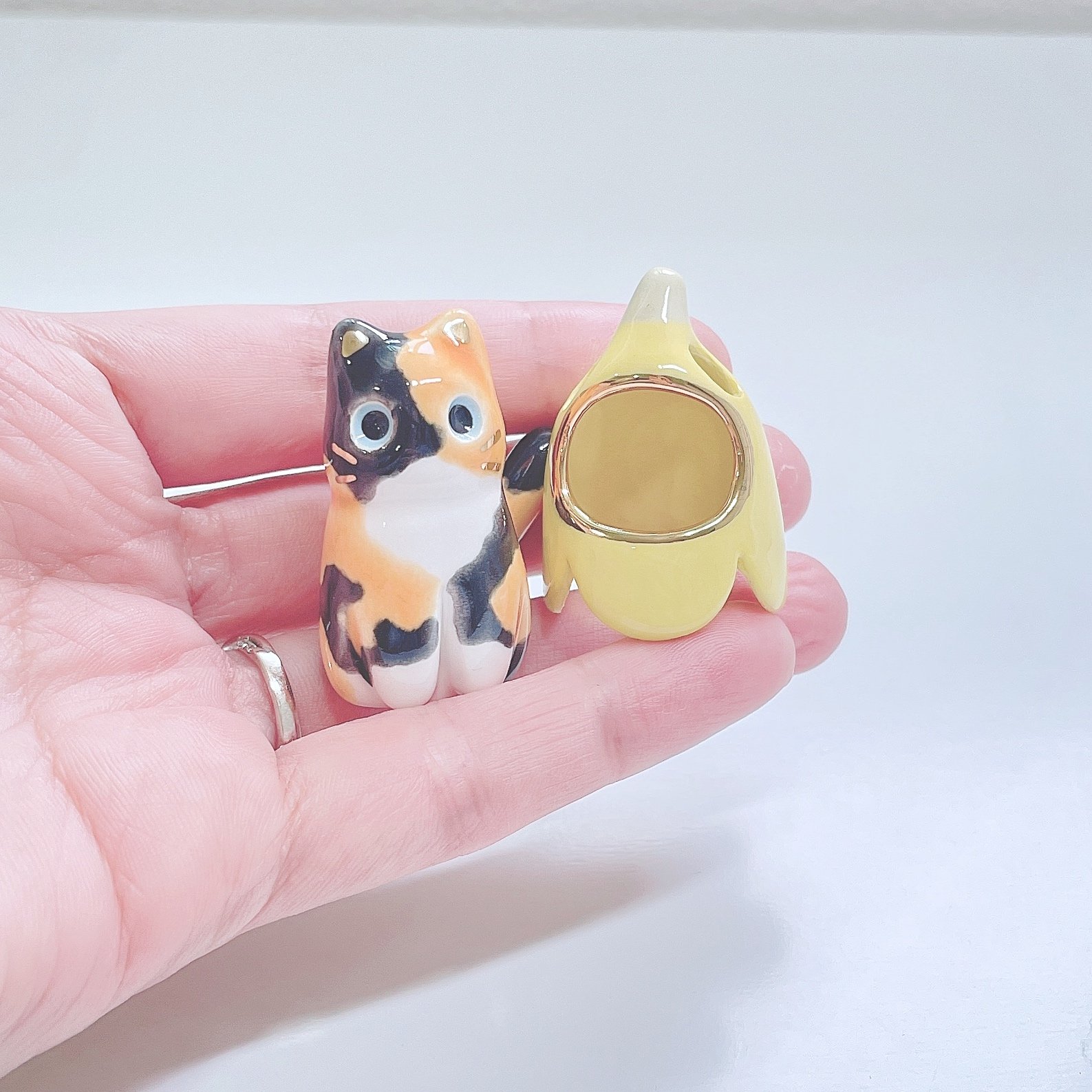 Banana cat ceramic figurine is made of low fire earthen clay and Duncan underglaze for ceramic. In order to achieve the final looking pieces, I put a lot of time and care into sculpting, glazing, and firing my pieces at the right temperature. Delicate 22k gold details are painted by hand in these pieces for elegant and shiny looking. Please handle them with care.