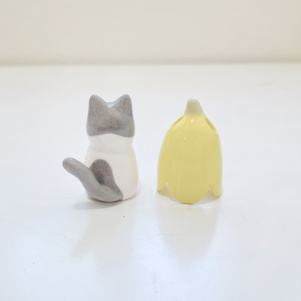 Banana cat ceramic figurine is made of low fire earthen clay and Duncan underglaze for ceramic. In order to achieve the final looking pieces, I put a lot of time and care into sculpting, glazing, and firing my pieces at the right temperature. Delicate 22k gold details are painted by hand in these pieces for elegant and shiny looking. Please handle them with care.