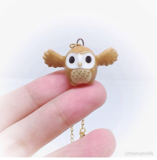_barn owl ceramic necklace is made of low fire earthen clay and Duncan underglaze for ceramic. In order to achieve the final looking pieces, I put a lot of time and care into sculpting, glazing, and firing my pieces at the right temperature. Delicate 22k gold details are painted by hand in these pieces for elegant and shiny looking. All my pieces are very small (about as big as your thumb), please handle them with care and I recommend to take off your necklace while sleeping and showering.