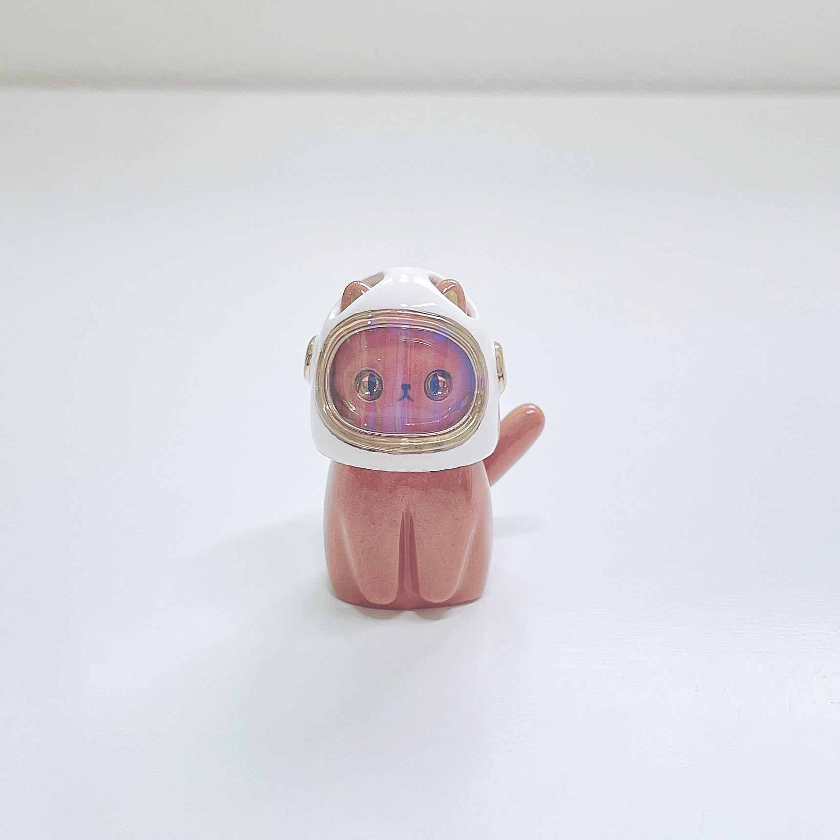 Chocolate cat with astronaut helmet ceramic figurine (helmet cover version)