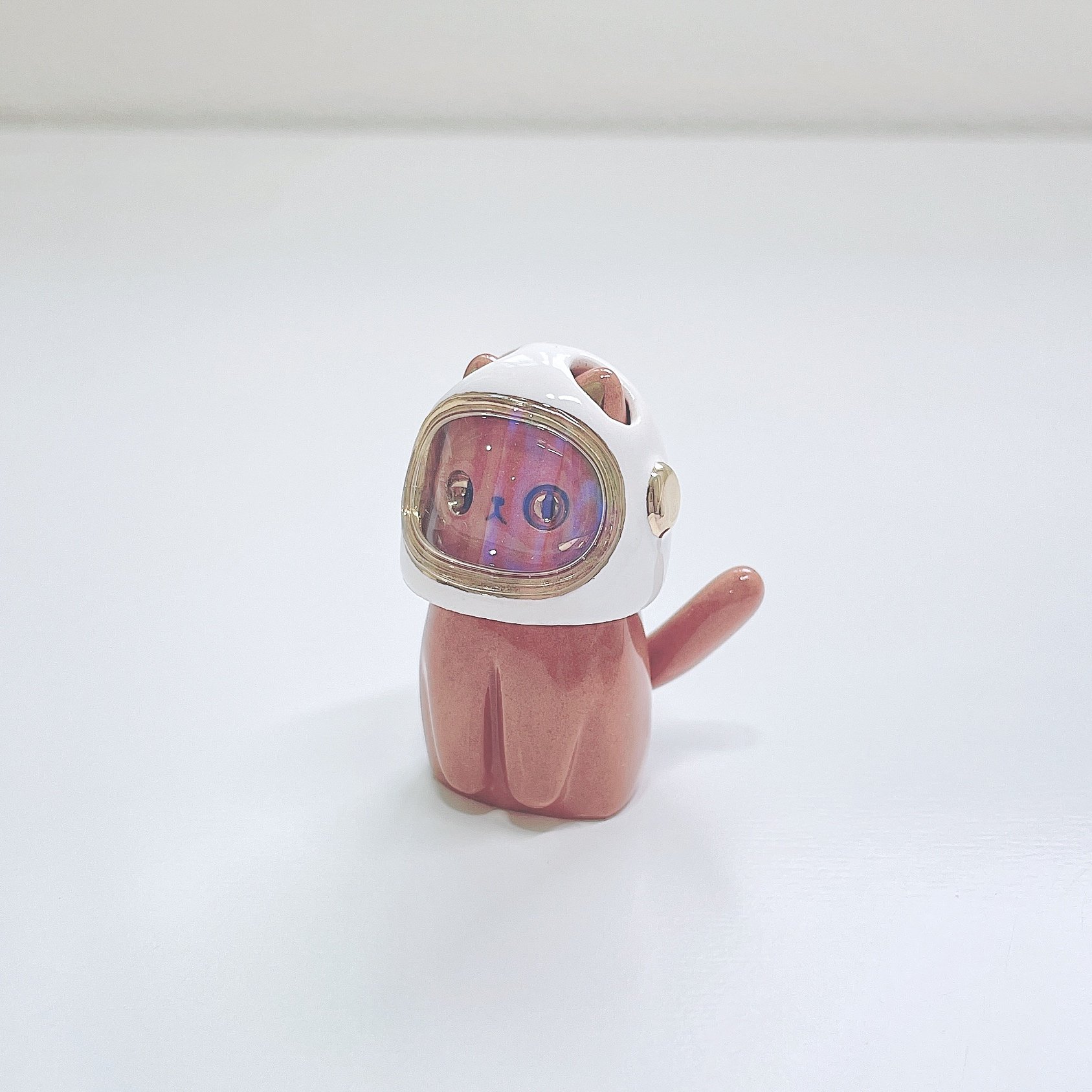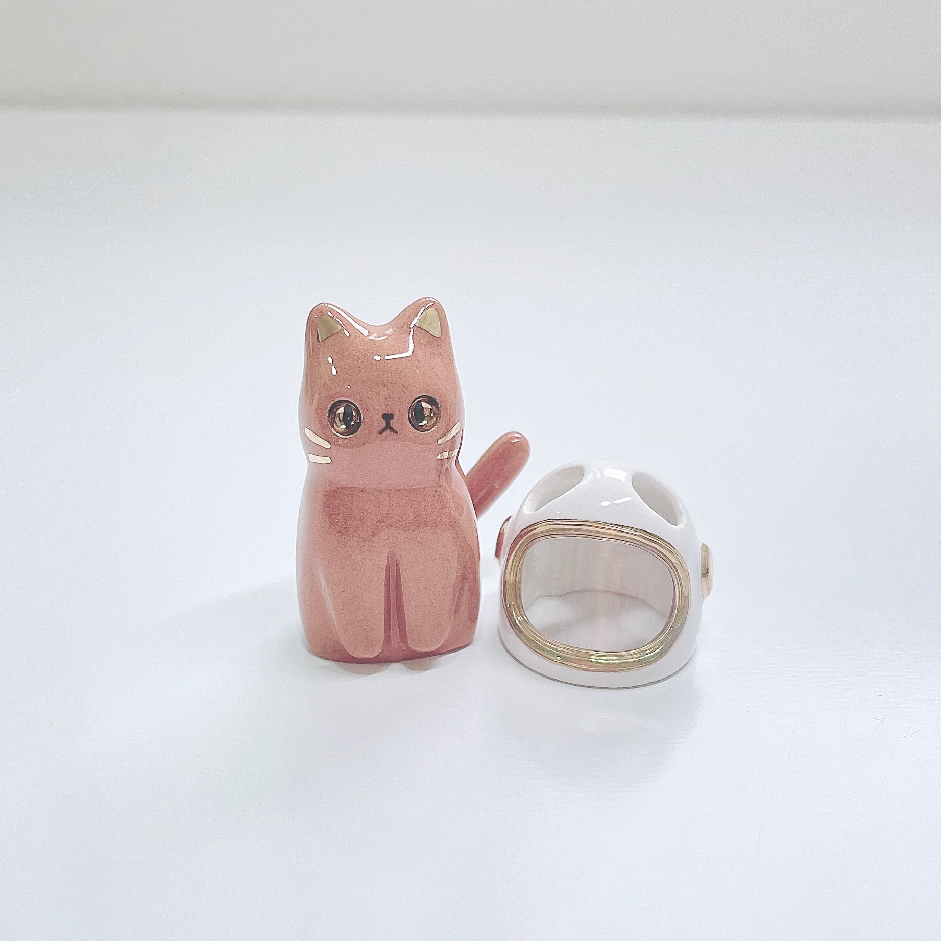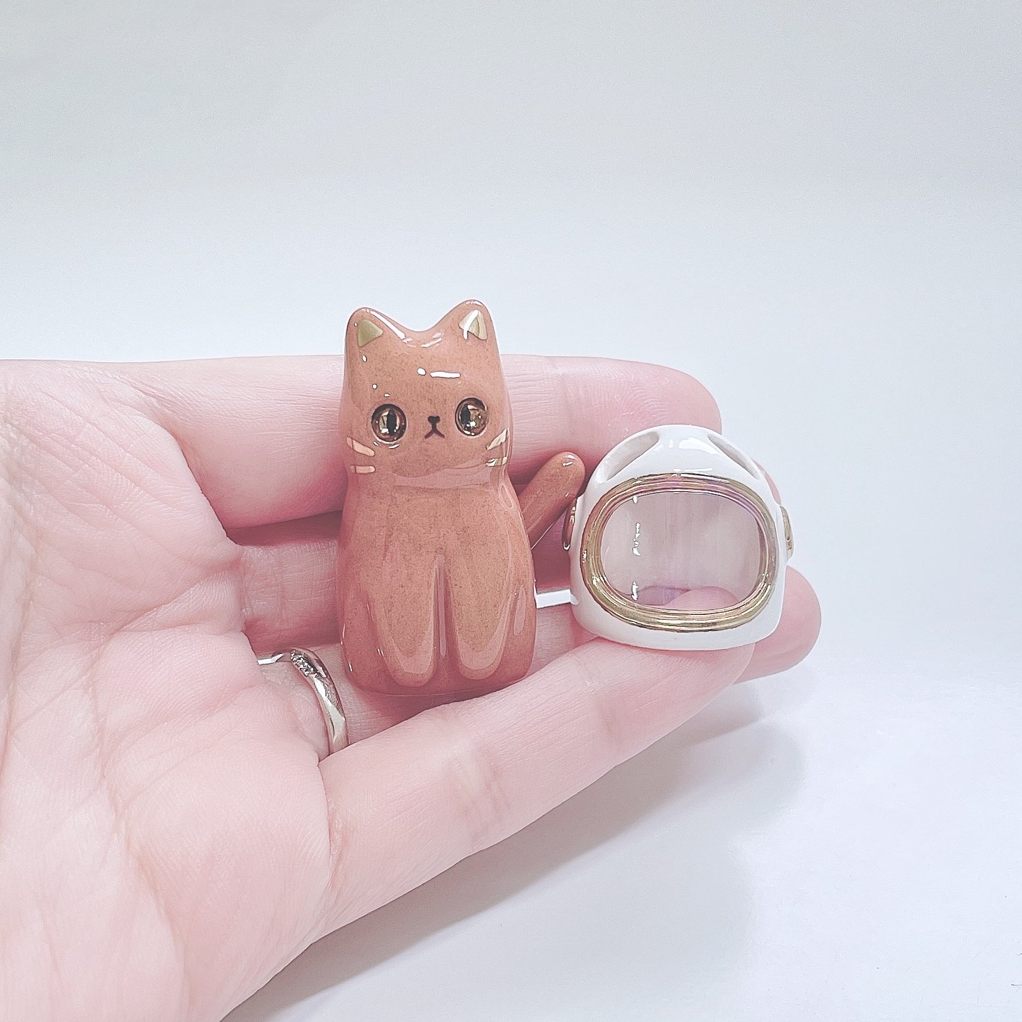 Chocolate cat with astronaut helmet ceramic figurine is made of low fire earthen clay and Duncan underglaze for ceramic. In order to achieve the final looking pieces, I put a lot of time and care into sculpting, glazing, and firing my pieces at the right temperature. Delicate 22k gold details are painted by hand in these pieces for elegant and shiny looking. Please handle them with care.