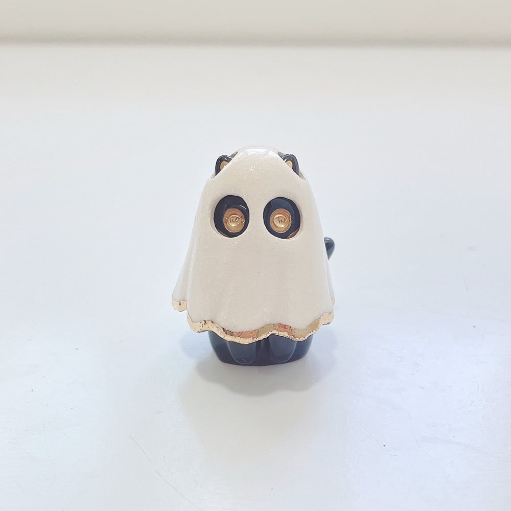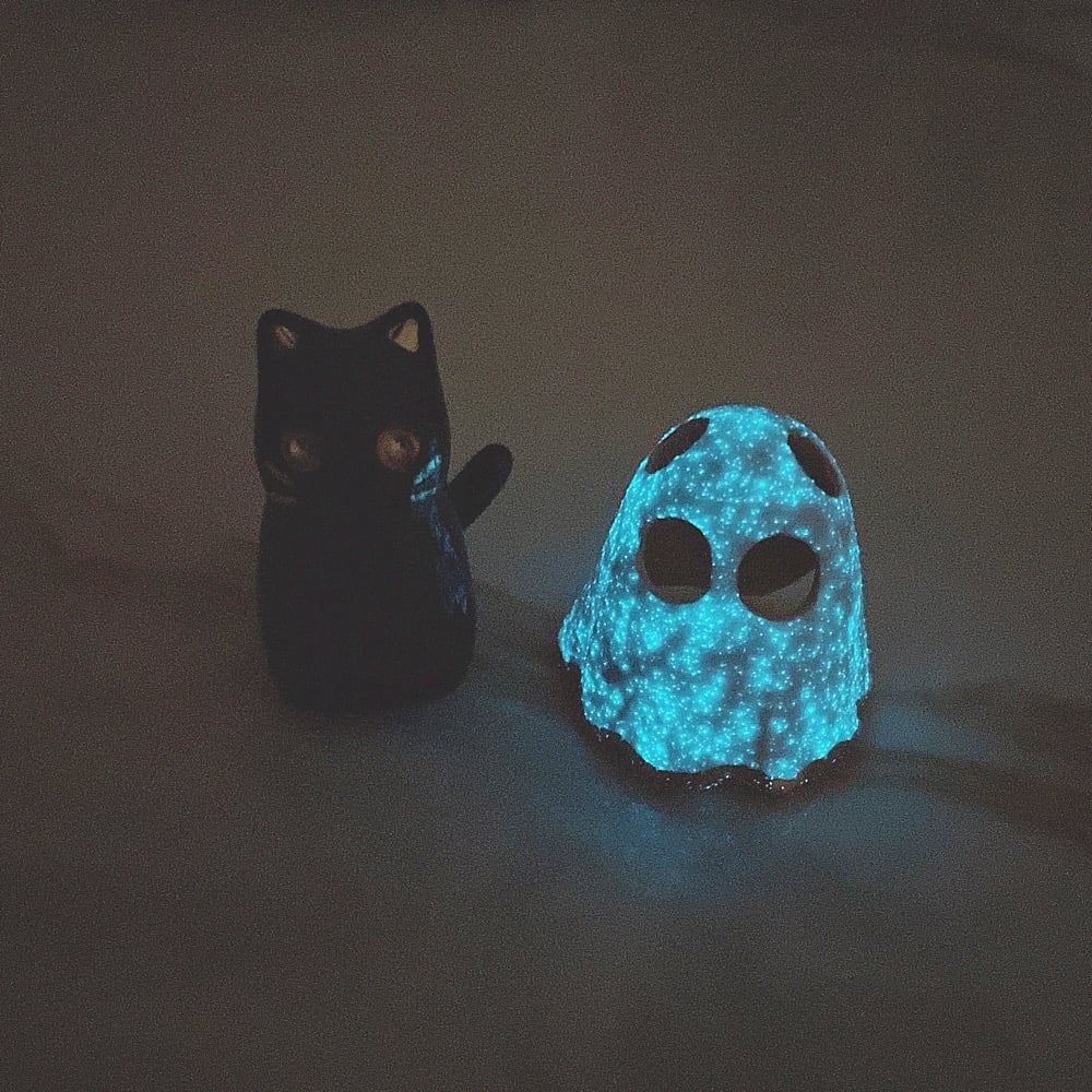 Glow in dark Cat With Ghost Mask Ceramic figurine