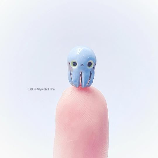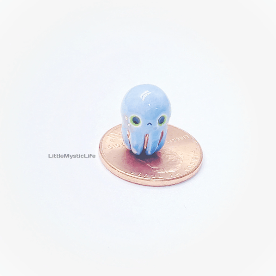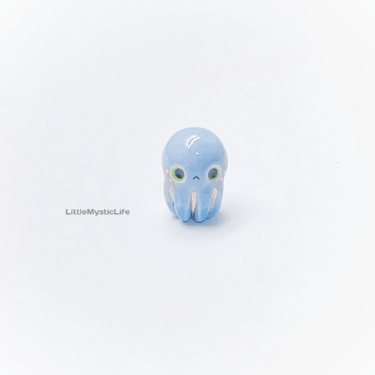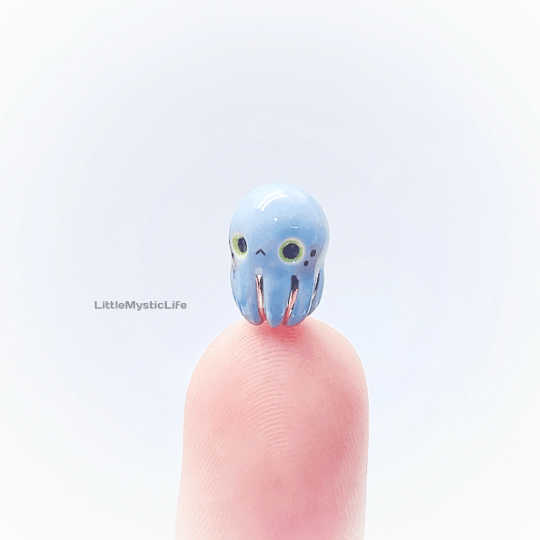 Baby octopus ceramic figurine is made of low fire earthen clay and Duncan underglaze for ceramic. In order to achieve the final looking pieces, I put a lot of time and care into sculpting, glazing, and firing my pieces at the right temperature. Delicate 22k gold details are painted by hand in these pieces for elegant and shiny looking. All my pieces are very small (about as big as your thumb), please handle them with care.
