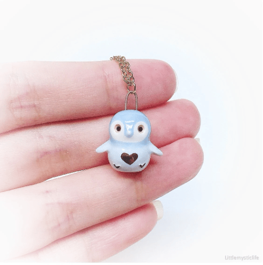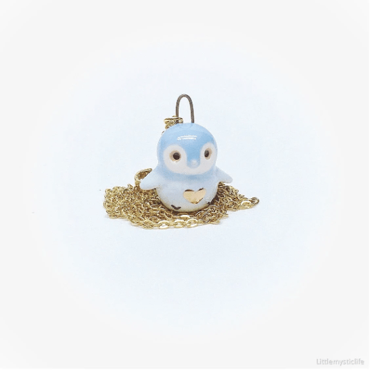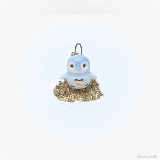 _ Penguin ceramic necklace is made of low fire earthen clay and Duncan underglaze for ceramic. In order to achieve the final looking pieces, I put a lot of time and care into sculpting, glazing, and firing my pieces at the right temperature. Delicate 22k gold details are painted by hand in these pieces for elegant and shiny looking. All my pieces are very small (about as big as your thumb), please handle them with care and I recommend to take off your necklace while sleeping and showering.