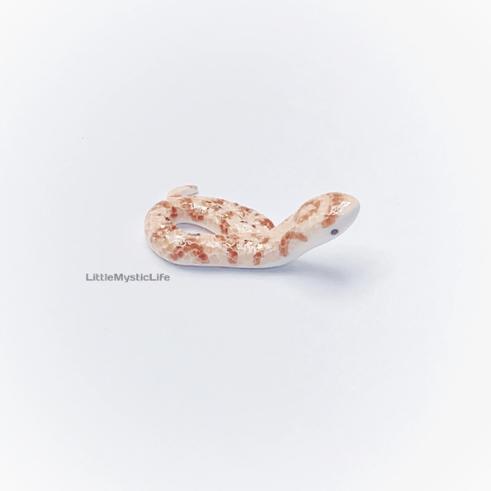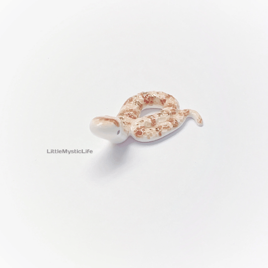 Brown snake ceramic figurine is made of low fire earthen clay and Duncan underglaze for ceramic. In order to achieve the final looking pieces, I put a lot of time and care into sculpting, glazing, and firing my pieces at the right temperature. Delicate 22k gold details are painted by hand in these pieces for elegant and shiny looking. All my pieces are very small (about as big as your thumb), please handle them with care and I recommend to take off your necklace while sleeping and showering.