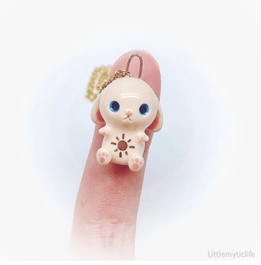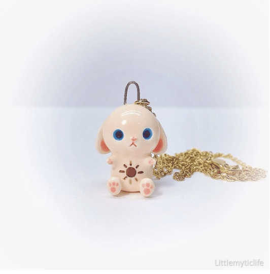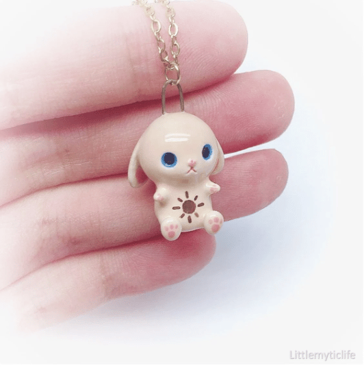 _Bunny ceramic necklace is made of low fire earthen clay and Duncan underglaze for ceramic. In order to achieve the final looking pieces, I put a lot of time and care into sculpting, glazing, and firing my pieces at the right temperature. Delicate 22k gold details are painted by hand in these pieces for elegant and shiny looking. All my pieces are very small (about as big as your thumb), please handle them with care and I recommend to take off your necklace while sleeping and showering.