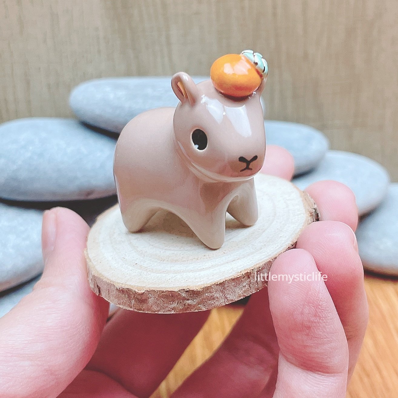 capybara ceramic figurine is made of low fire earthen clay and Duncan underglaze for ceramic. In order to achieve the final looking pieces, I put a lot of time and care into sculpting, glazing, and firing my pieces at the right temperature. Delicate 22k gold details are painted by hand in these pieces for elegant and shiny looking. Please handle them with care.