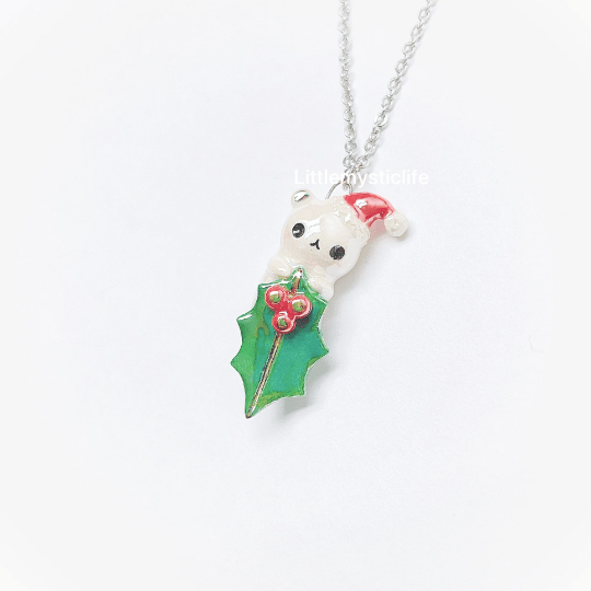 Christmas mistletoe bear necklace