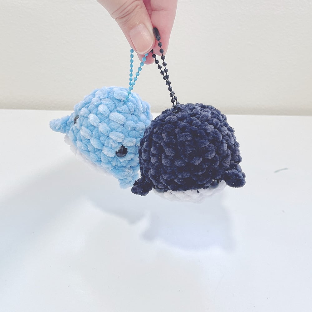 Crochet blue whale and orca keychain is made with soft velvet crochet yarn. Please handle them with care. Please pick your design.