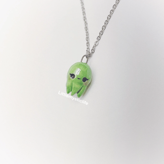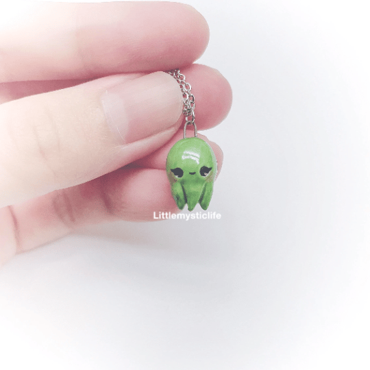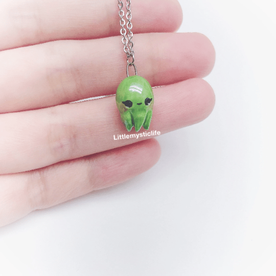 _baby octopus ceramic necklace is made of low fire earthen clay and Duncan underglaze for ceramic. In order to achieve the final looking pieces, I put a lot of time and care into sculpting, glazing, and firing my pieces at the right temperature. Delicate 22k gold details are painted by hand in these pieces for elegant and shiny looking. All my pieces are very small (about as big as your thumb), please handle them with care and I recommend to take off your necklace while sleeping and showering.