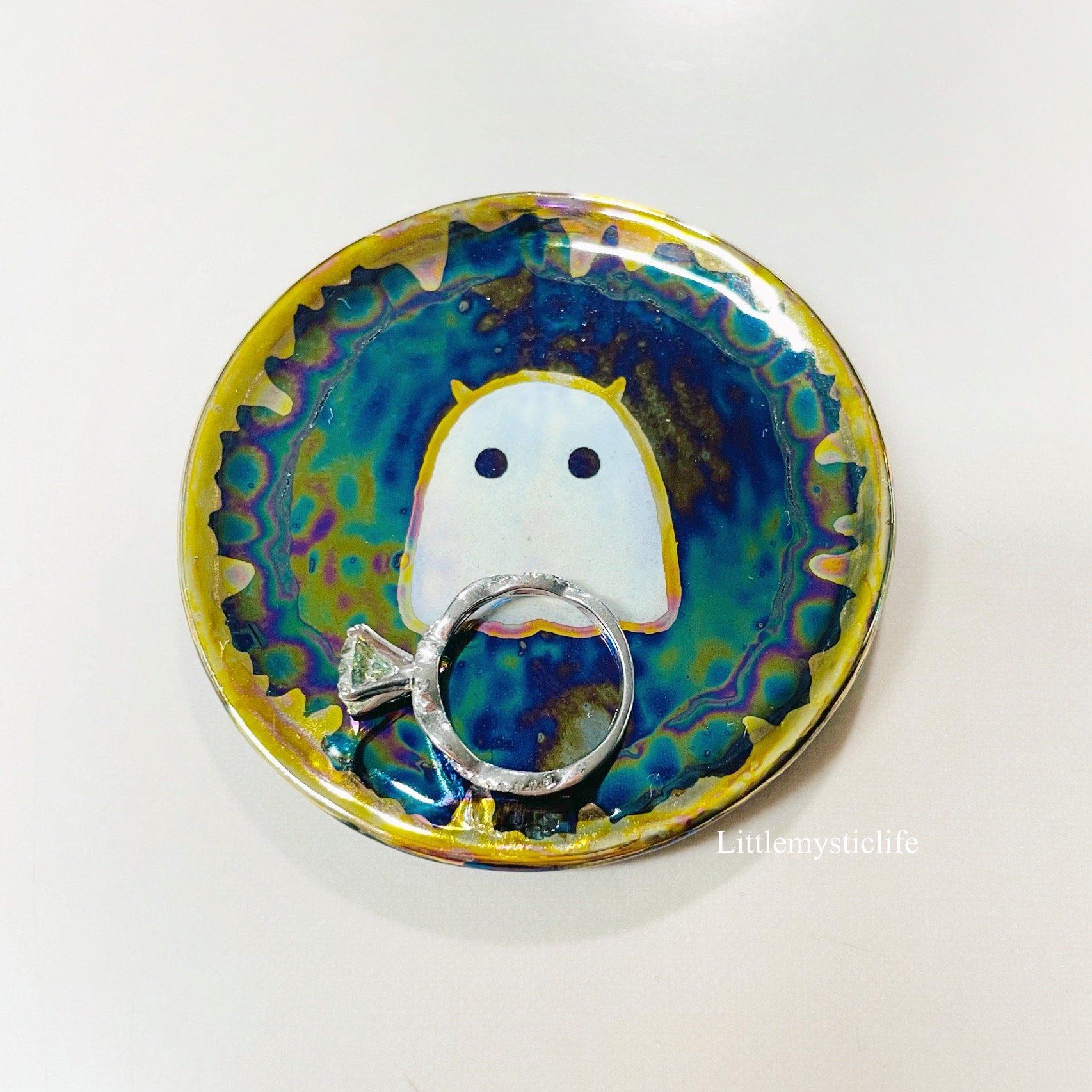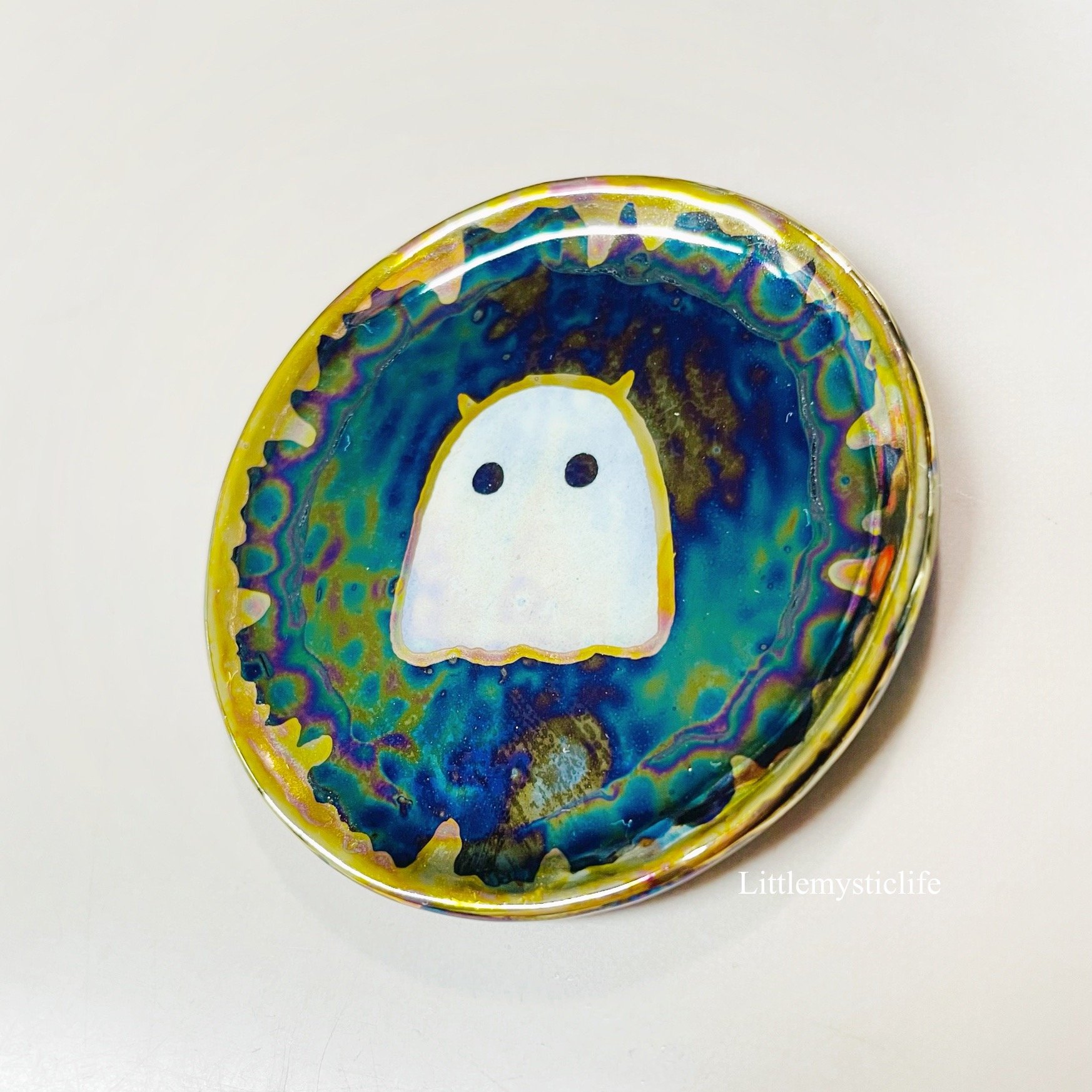 Cute mini ghost trinket dish with rainbow effect (2.5 inches diameter)