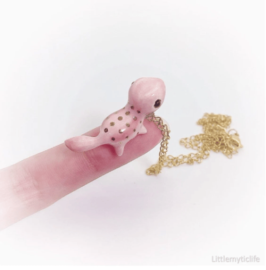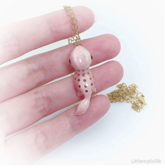 _Gecko ceramic necklace is made of low fire earthen clay and Duncan underglaze for ceramic. In order to achieve the final looking pieces, I put a lot of time and care into sculpting, glazing, and firing my pieces at the right temperature. Delicate 22k gold details are painted by hand in these pieces for elegant and shiny looking. All my pieces are very small (about as big as your thumb), please handle them with care and I recommend to take off your necklace while sleeping and showering.