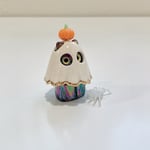 Glow in dark ghost mask, pumpkin, and spider black cat ceramic figurine (rainbow effect)
