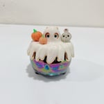 Glow in dark orange cat in witch brew cauldron ceramic keepsake (rainbow effect)