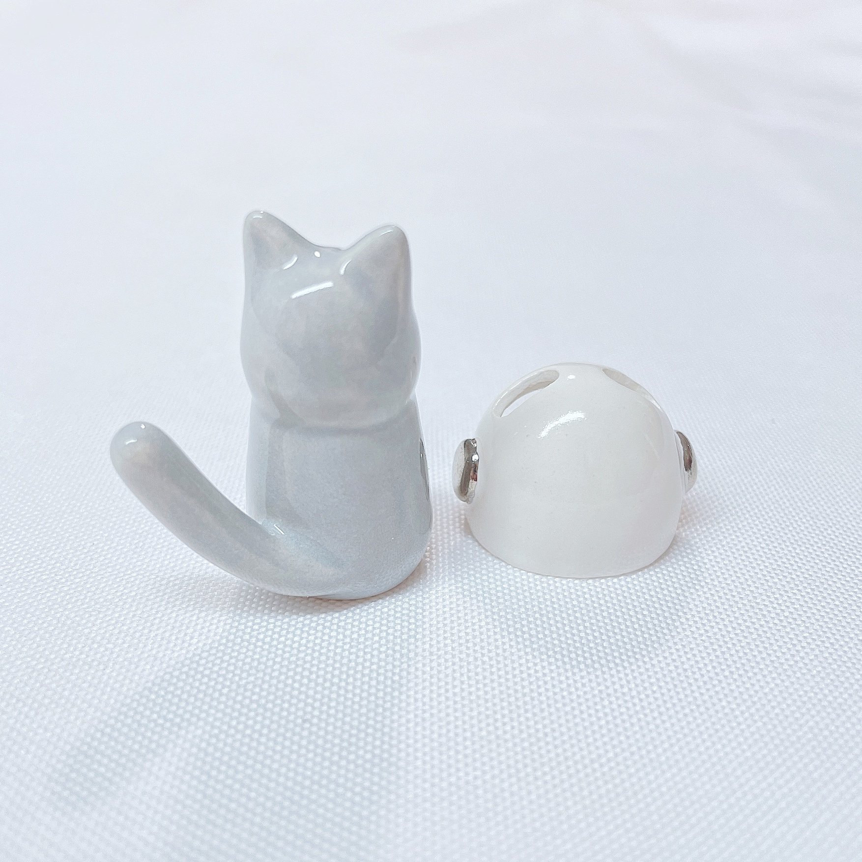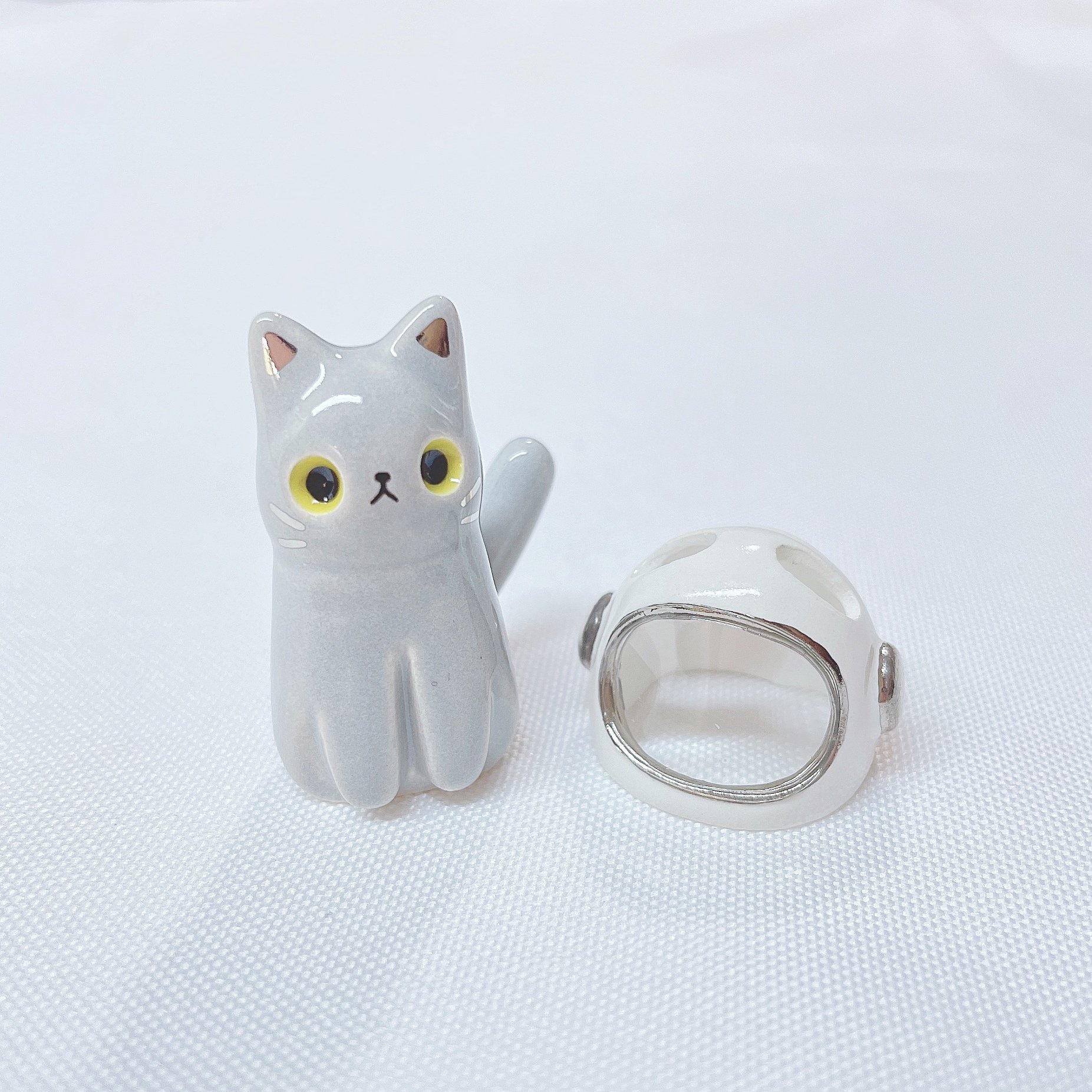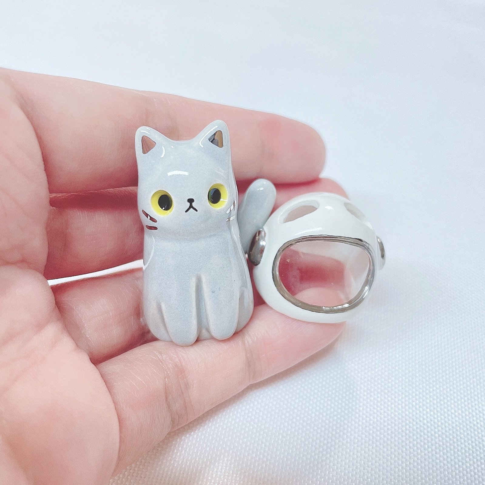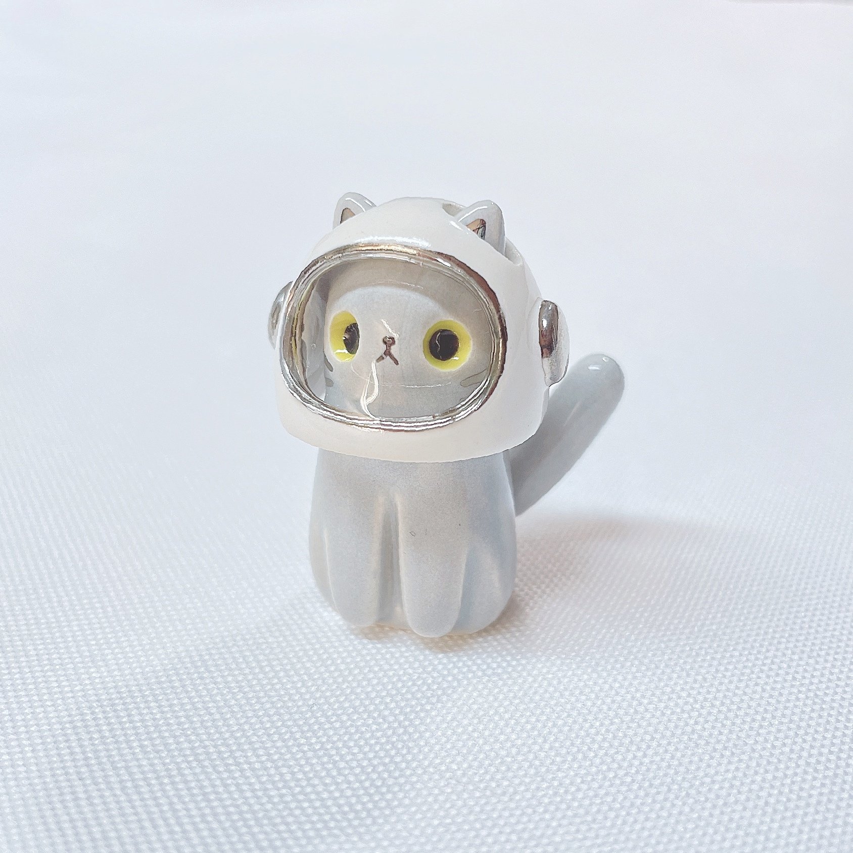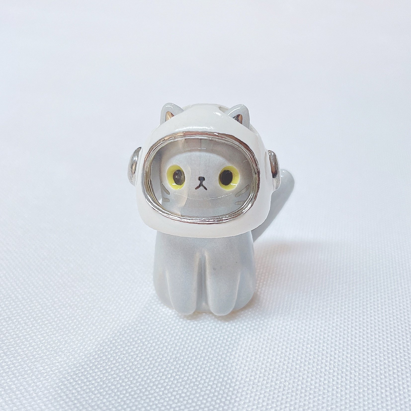 Gray cat with astronaut helmet ceramic figurine (helmet cover and white gold version)