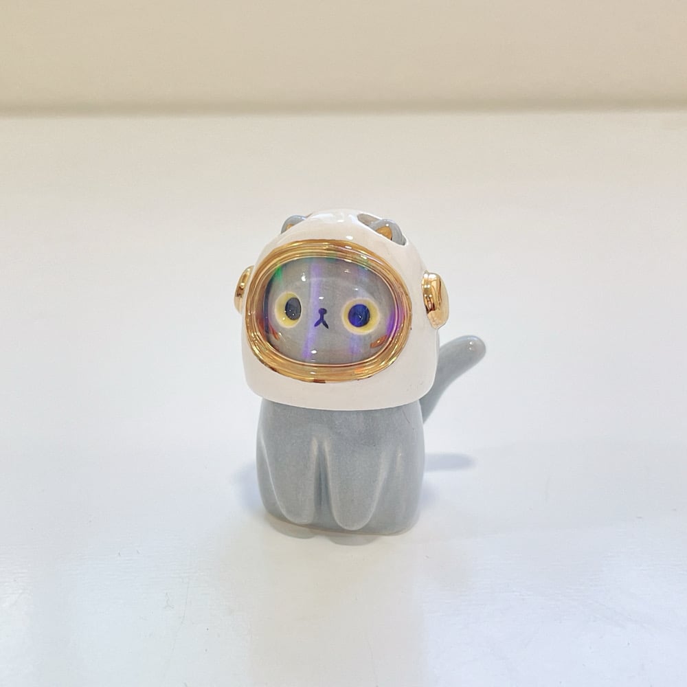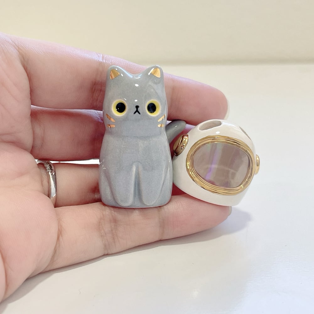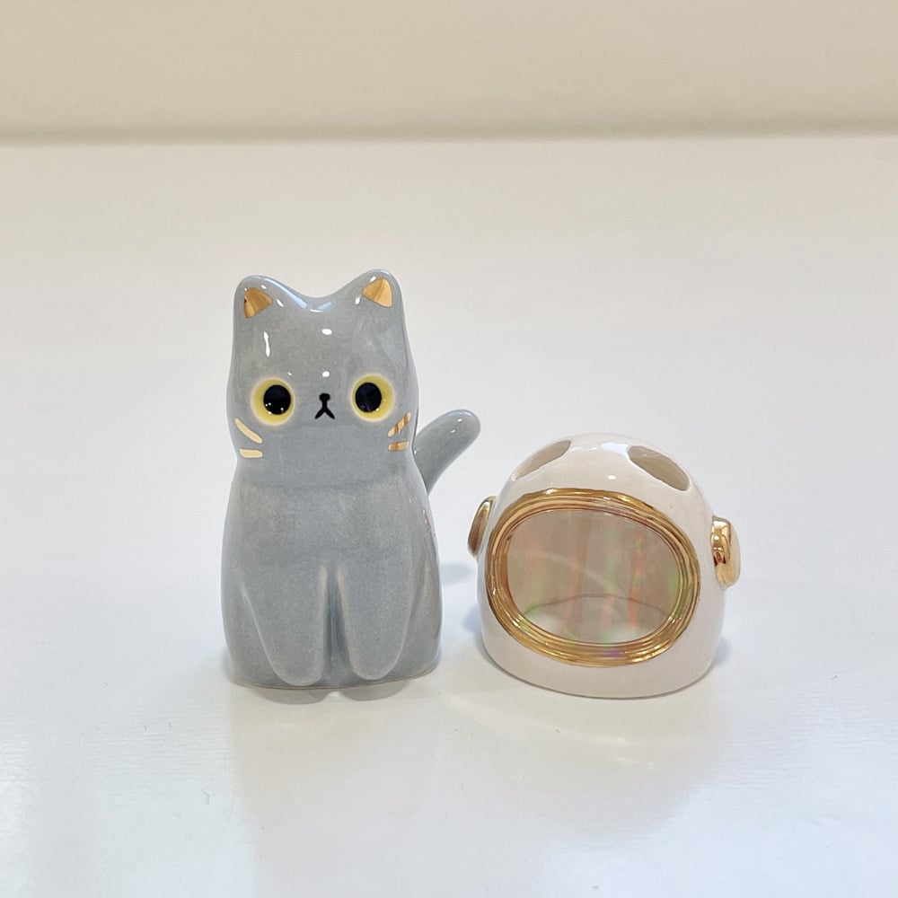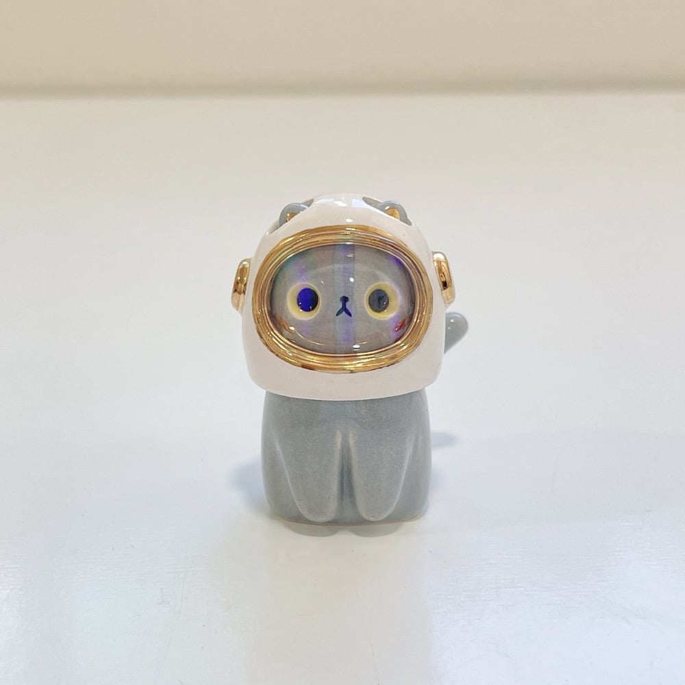 Gray cat with astronaut helmet ceramic figurine (helmet cover version)