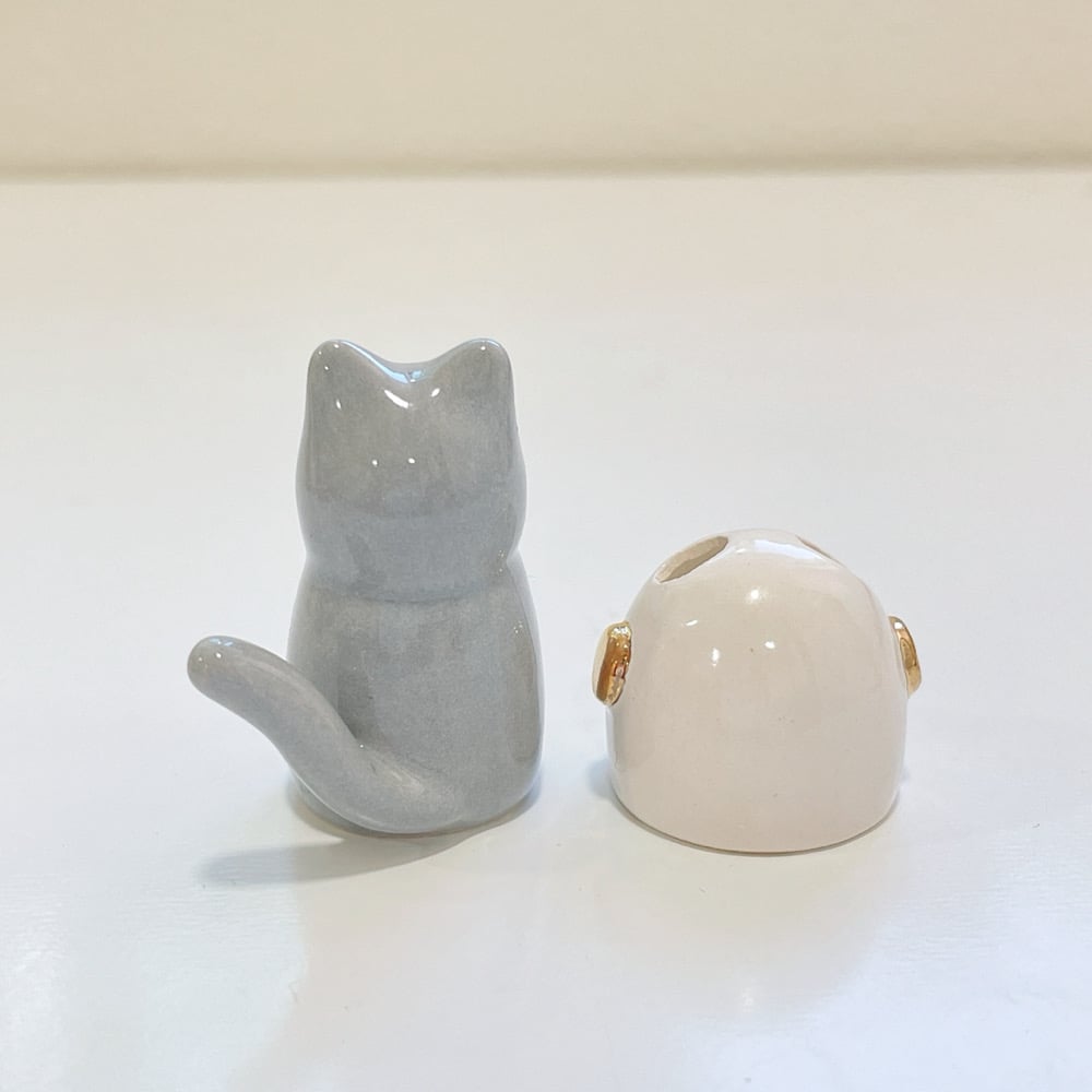Grat cat with astronaut helmet ceramic figurine is made of low fire earthen clay and Duncan underglaze for ceramic. In order to achieve the final looking pieces, I put a lot of time and care into sculpting, glazing, and firing my pieces at the right temperature. Delicate 22k gold details are painted by hand in these pieces for elegant and shiny looking. Please handle them with care.
