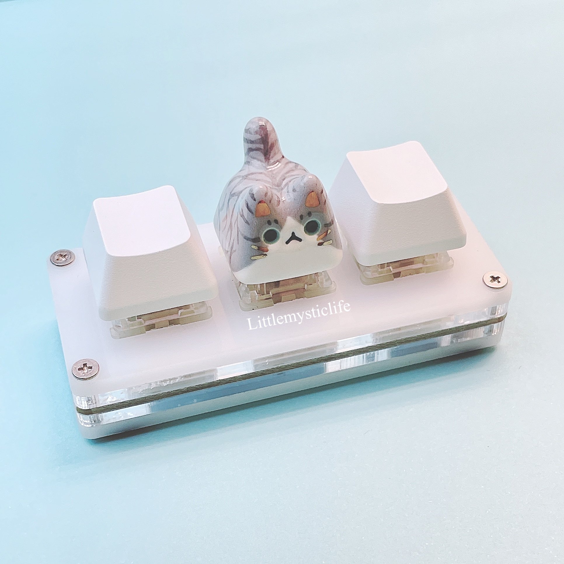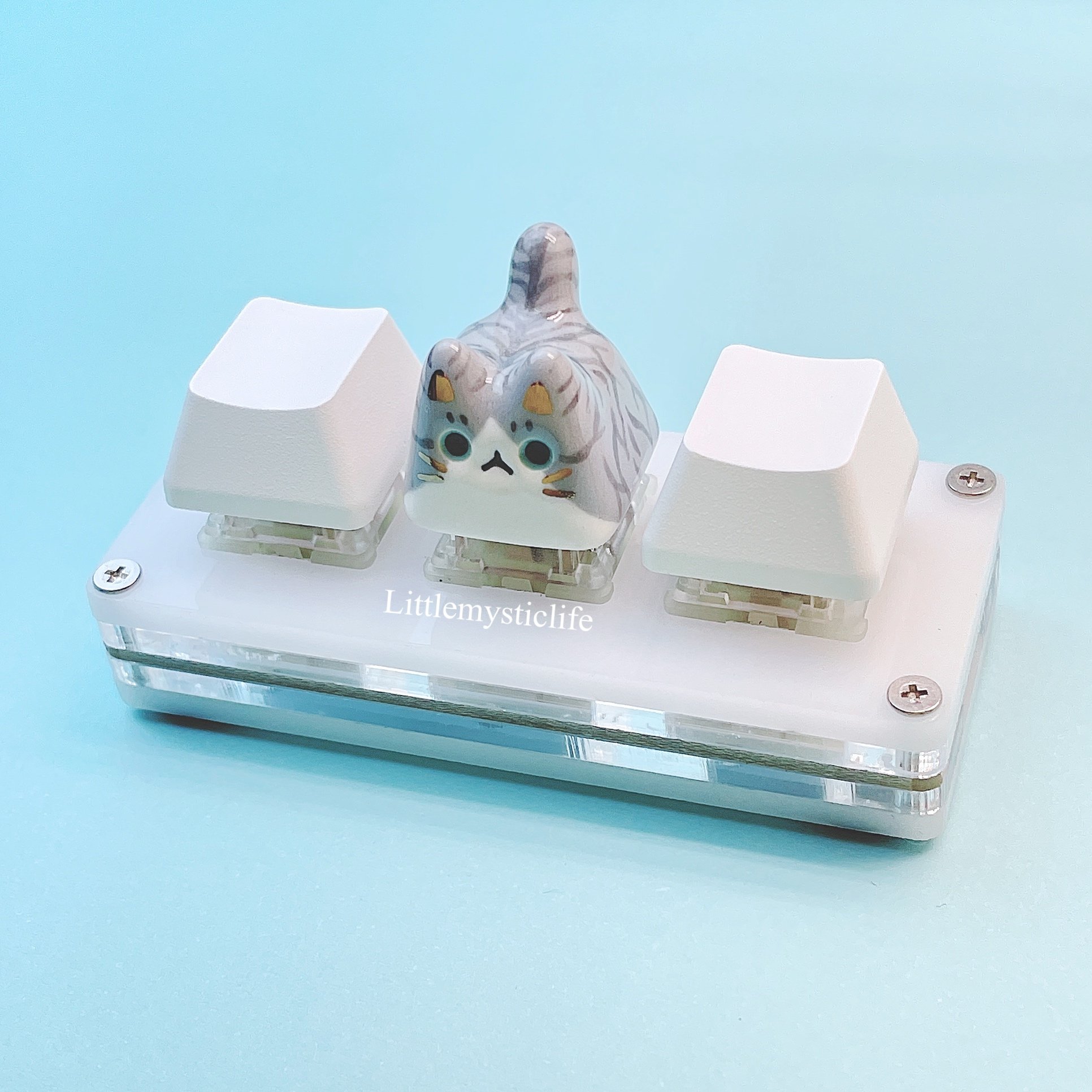 Keycap tabby cat is made of low fire earthen clay and Duncan underglaze for ceramic. In order to achieve the final looking pieces, I put a lot of time and care into sculpting, glazing, and firing my pieces at the right temperature. Delicate 22k gold details are painted by hand in these pieces for elegant and shiny looking. All my pieces are very small (about as big as your thumb), please handle them with care.