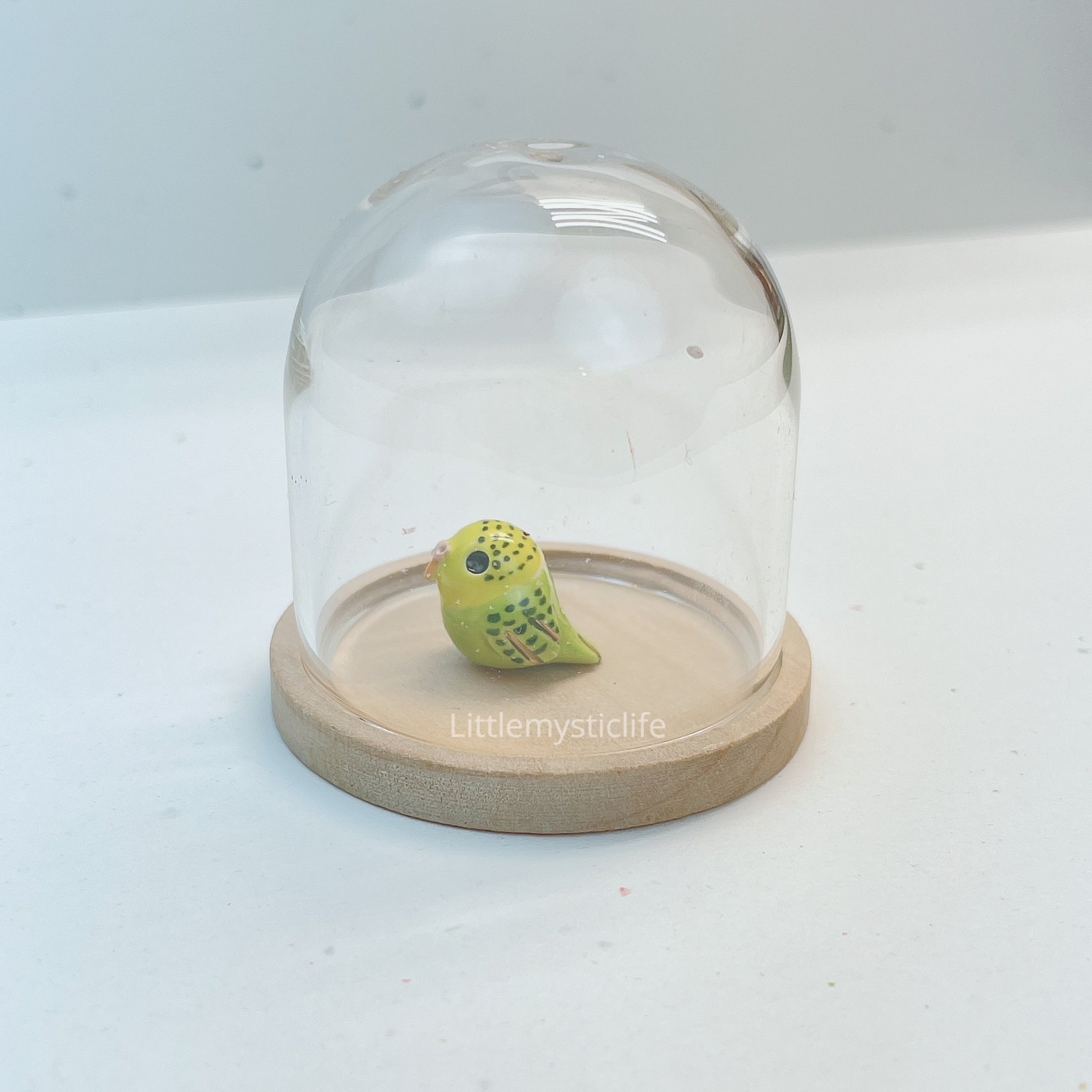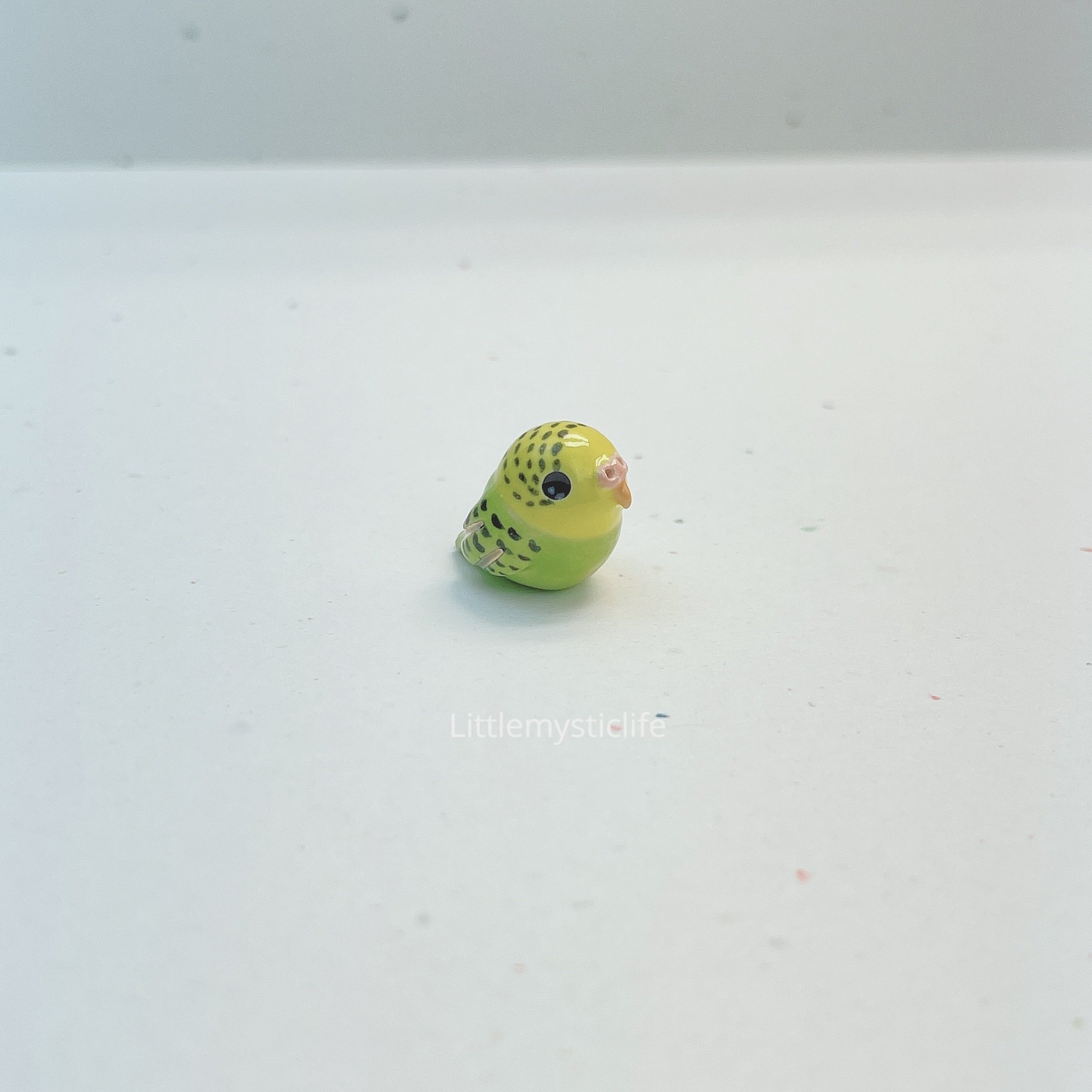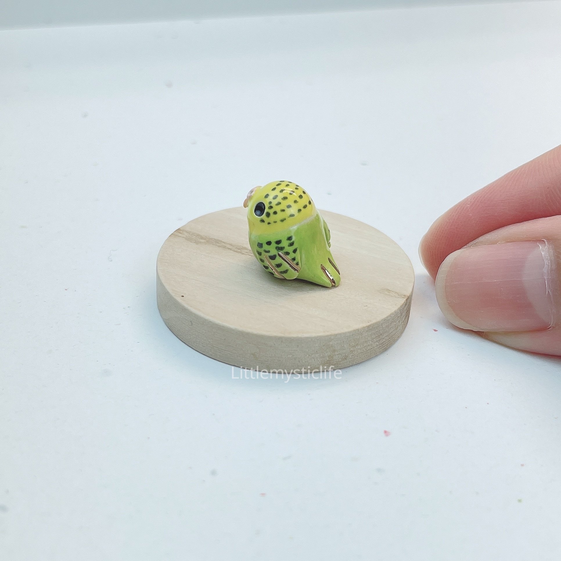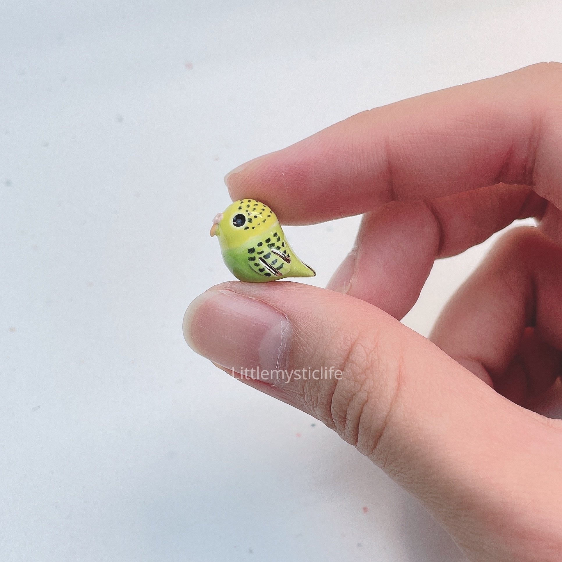 Budgie ceramic figurine is made of low fire earthen clay and Duncan underglaze for ceramic. In order to achieve the final looking pieces, I put a lot of time and care into sculpting, glazing, and firing my pieces at the right temperature. Delicate 22k gold details are painted by hand in these pieces for elegant and shiny looking. All my pieces are very small (about as big as your thumb), please handle them with care.