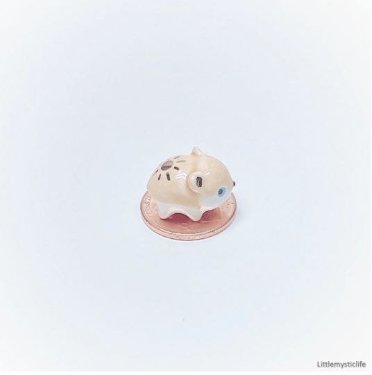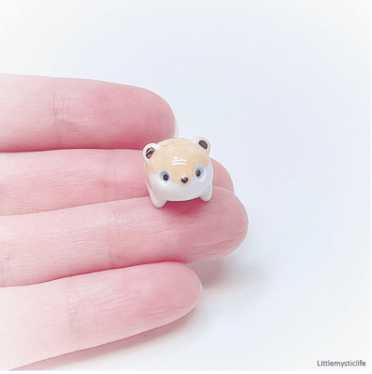 Hamster ceramic figurine is made of low fire earthen clay and Duncan underglaze for ceramic. In order to achieve the final looking pieces, I put a lot of time and care into sculpting, glazing, and firing my pieces at the right temperature. Delicate 22k gold details are painted by hand in these pieces for elegant and shiny looking. All my pieces are very small (about as big as your thumb), please handle them with care.