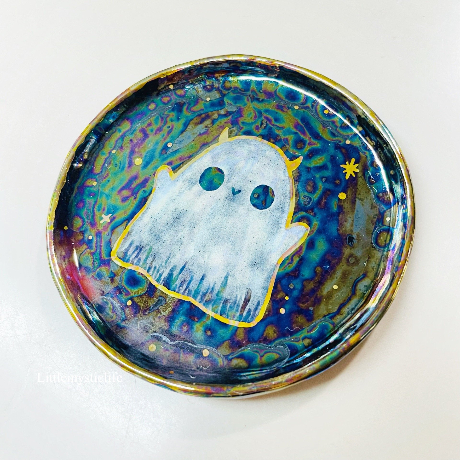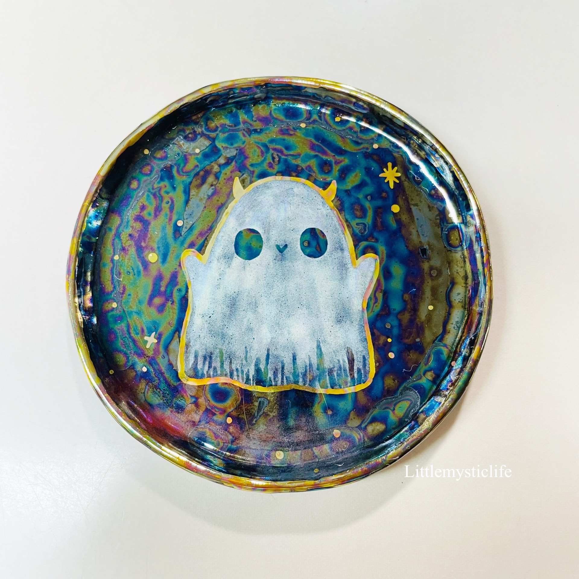 Happy Ghost Trinket Dish with rainbow effect (4.3 Inches Diameter)