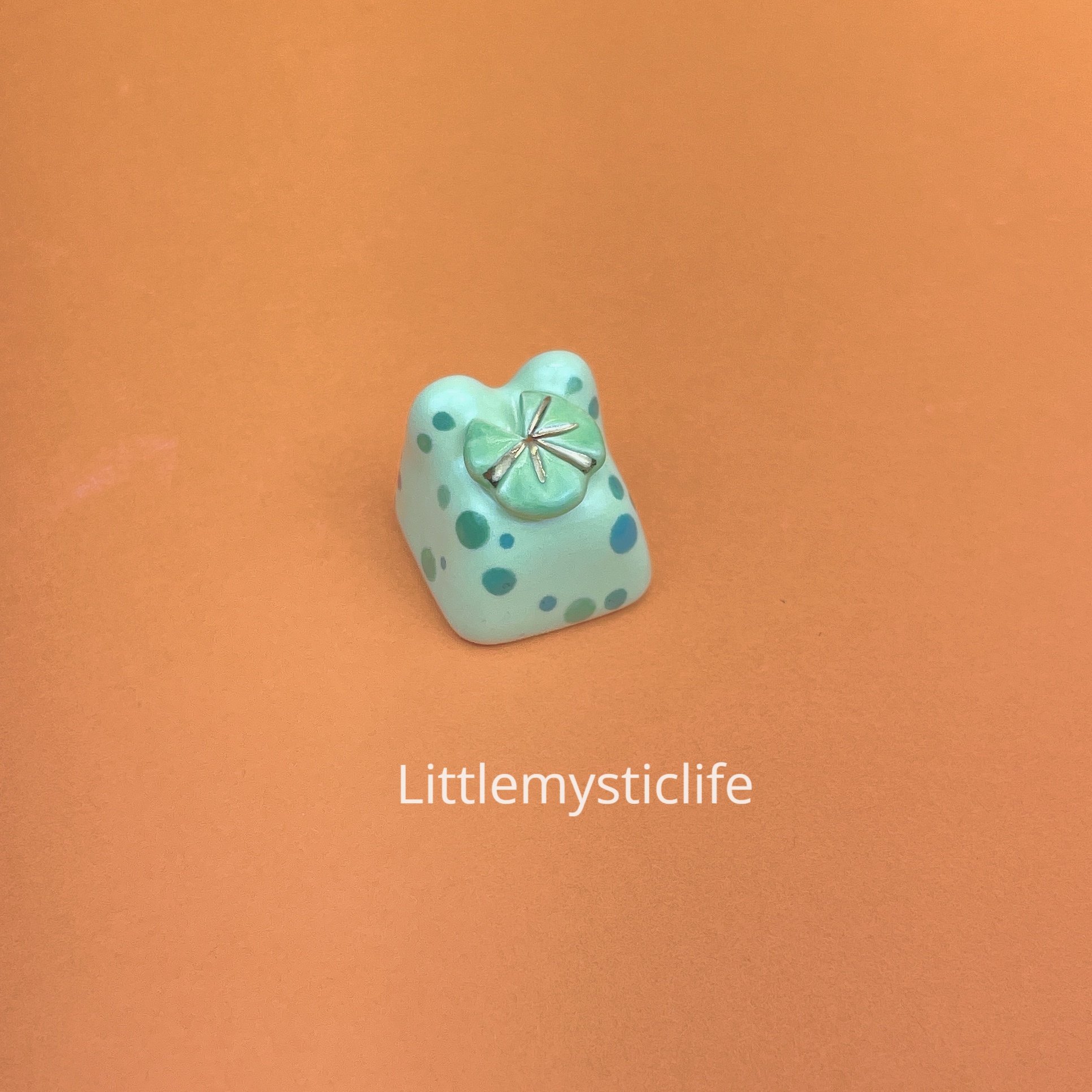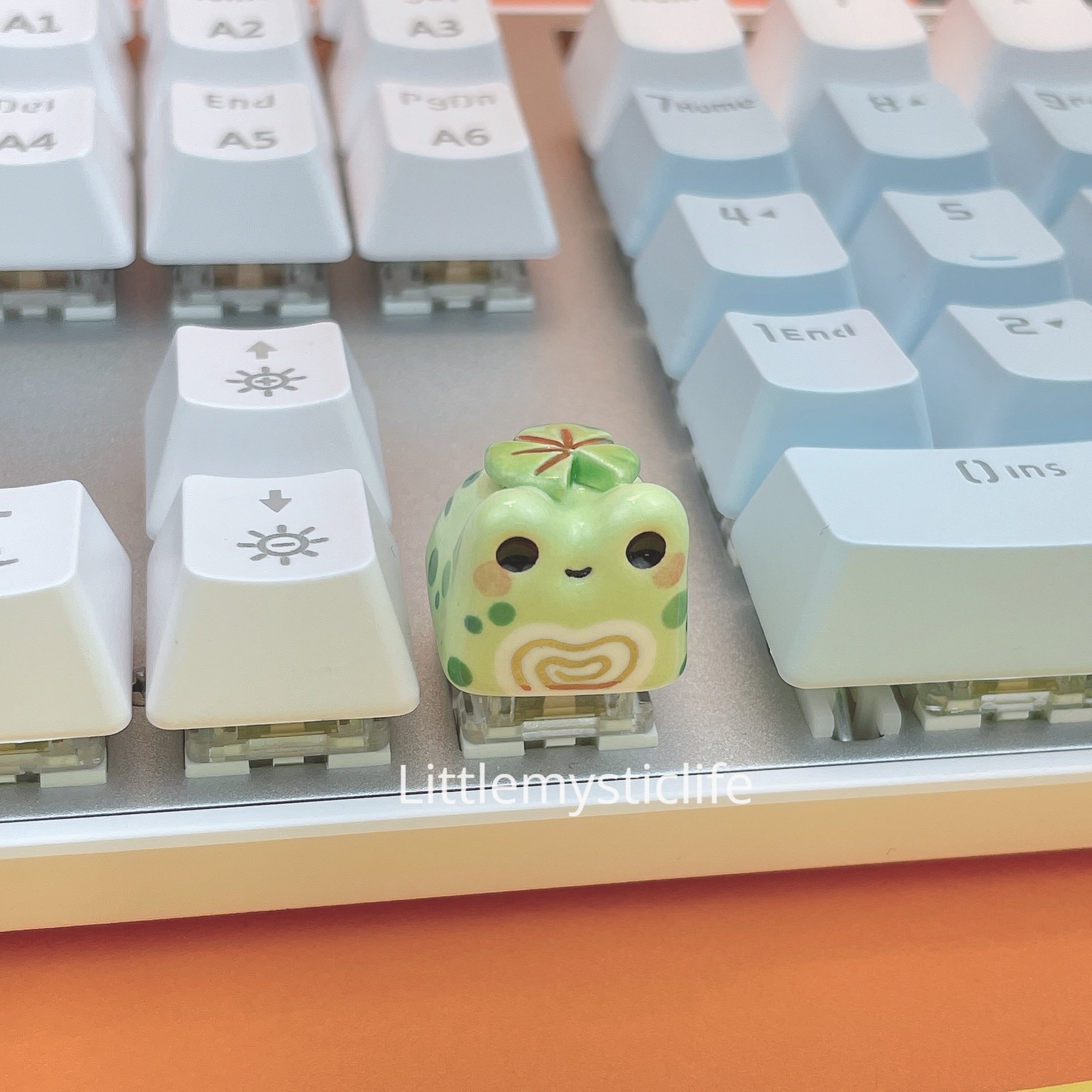 Keycap frog is made of low fire earthen clay and Duncan underglaze for ceramic. In order to achieve the final looking pieces, I put a lot of time and care into sculpting, glazing, and firing my pieces at the right temperature. Delicate 22k gold details are painted by hand in these pieces for elegant and shiny looking. All my pieces are very small (about as big as your thumb), please handle them with care.