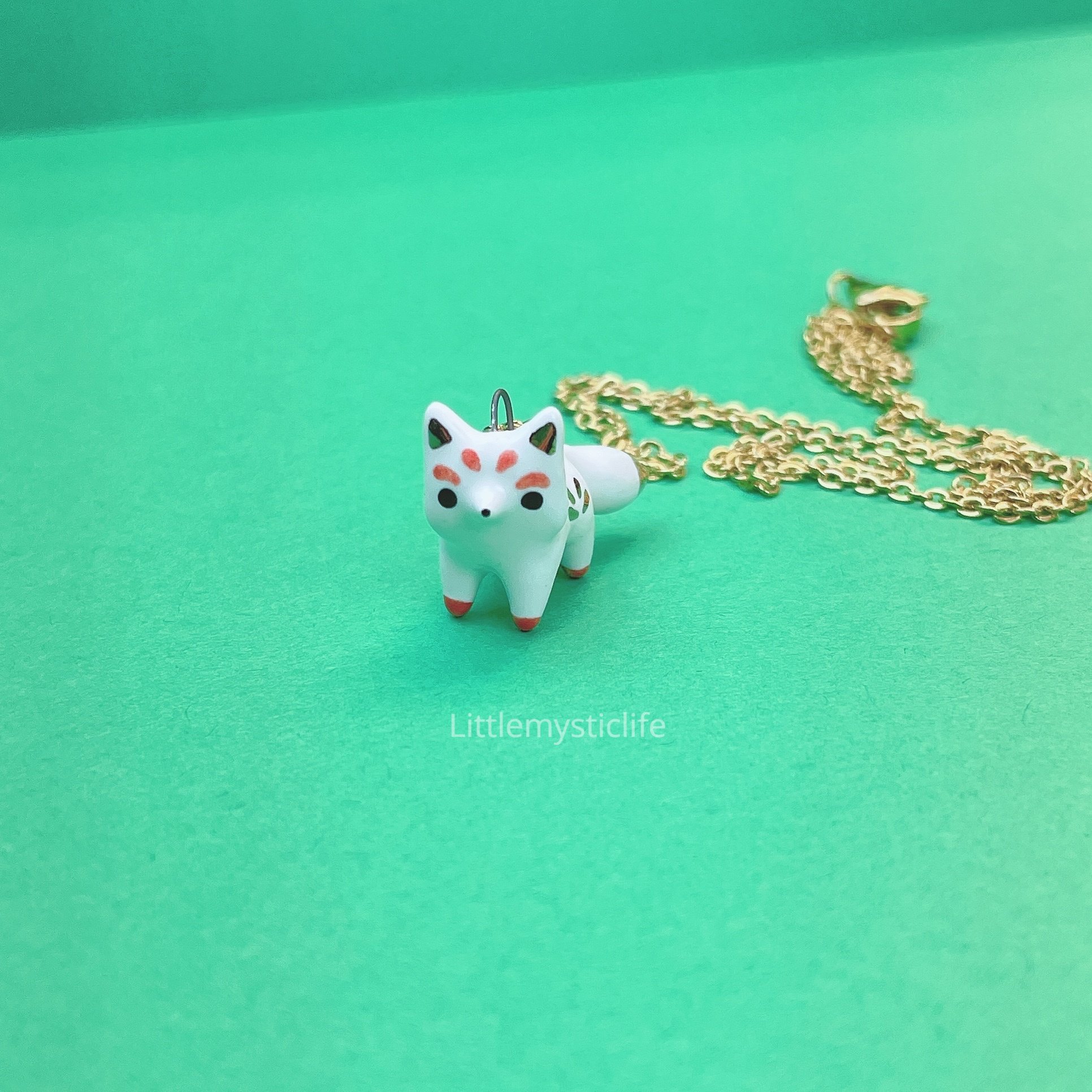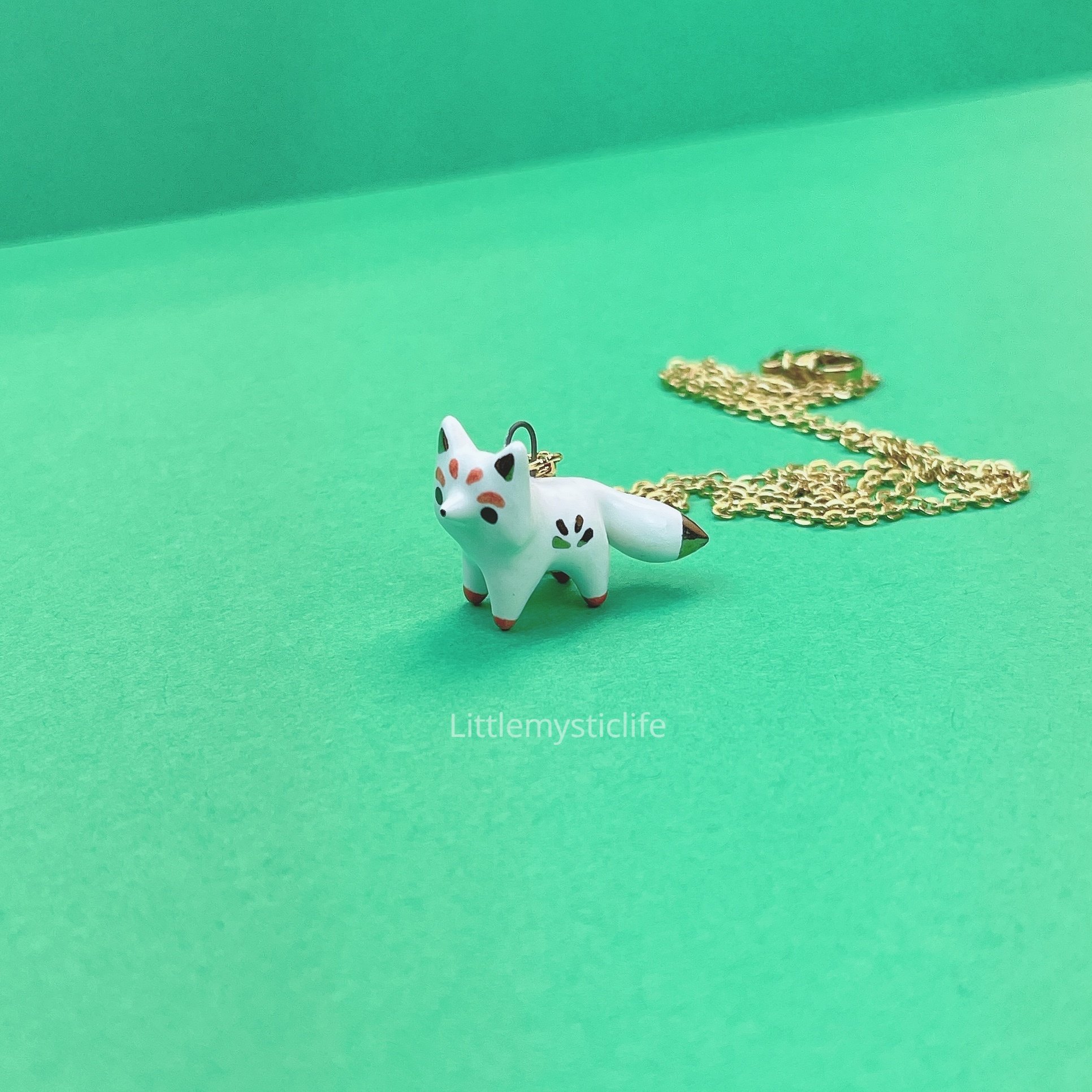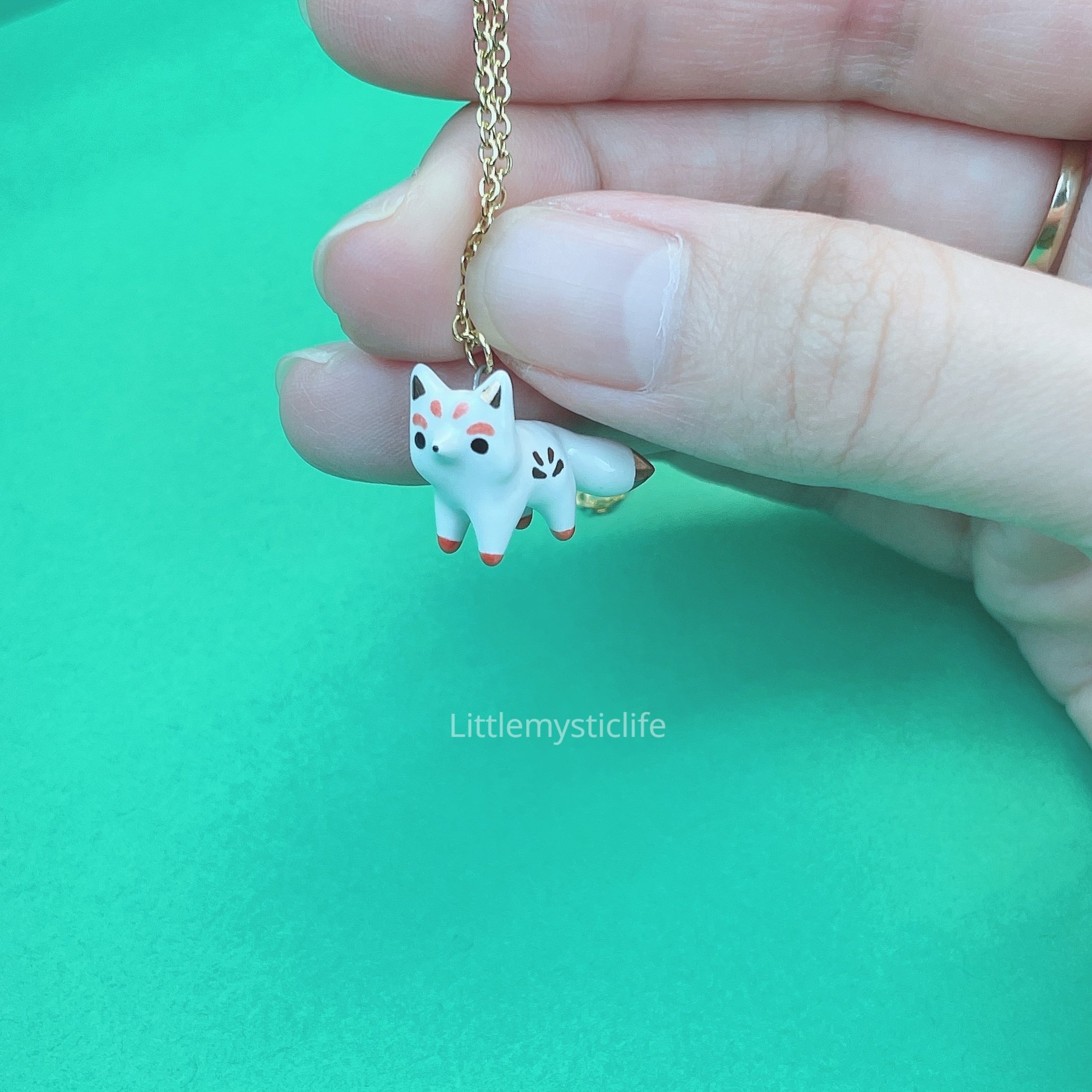 _Kitsune fox ceramic necklace is made of low fire earthen clay and Duncan underglaze for ceramic. In order to achieve the final looking pieces, I put a lot of time and care into sculpting, glazing, and firing my pieces at the right temperature. Delicate 22k gold details are painted by hand in these pieces for elegant and shiny looking. All my pieces are very small (about as big as your thumb), please handle them with care and I recommend to take off your necklace while sleeping and showering.