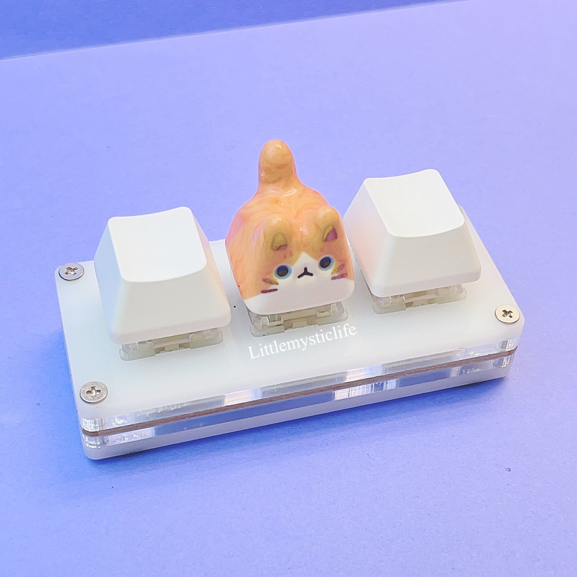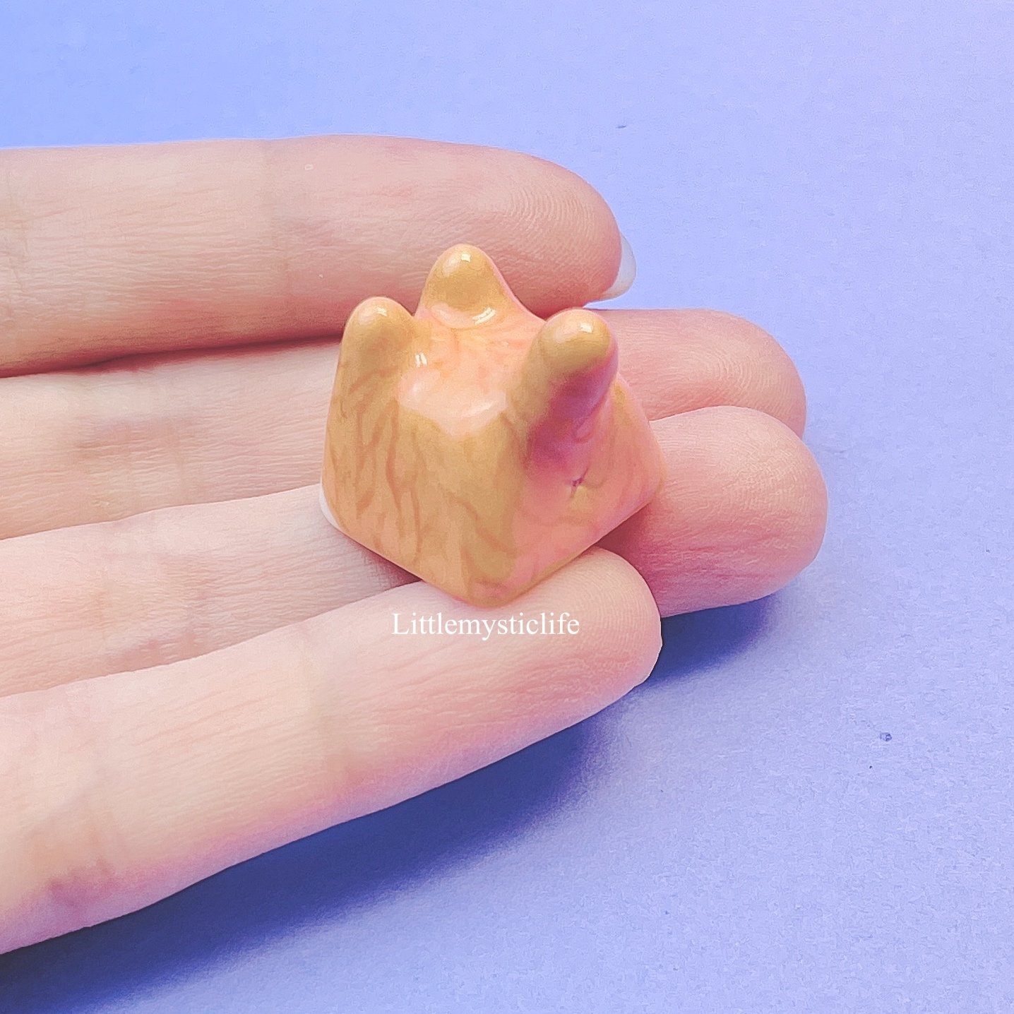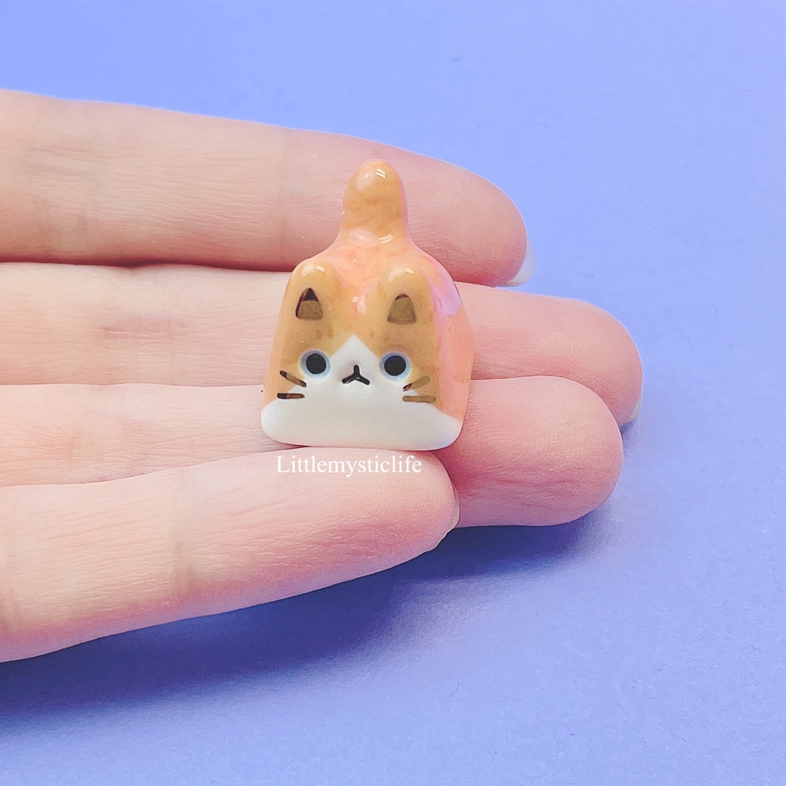 Keycap tabby cat is made of low fire earthen clay and Duncan underglaze for ceramic. In order to achieve the final looking pieces, I put a lot of time and care into sculpting, glazing, and firing my pieces at the right temperature. Delicate 22k gold details are painted by hand in these pieces for elegant and shiny looking. All my pieces are very small (about as big as your thumb), please handle them with care.