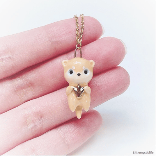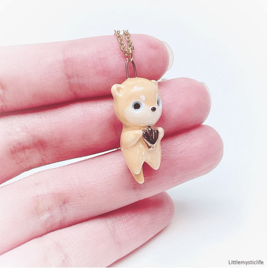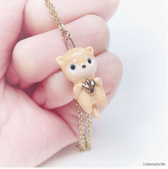 _Otter ceramic necklace is made of low fire earthen clay and Duncan underglaze for ceramic. In order to achieve the final looking pieces, I put a lot of time and care into sculpting, glazing, and firing my pieces at the right temperature. Delicate 22k gold details are painted by hand in these pieces for elegant and shiny looking. All my pieces are very small (about as big as your thumb), please handle them with care and I recommend to take off your necklace while sleeping and showering.