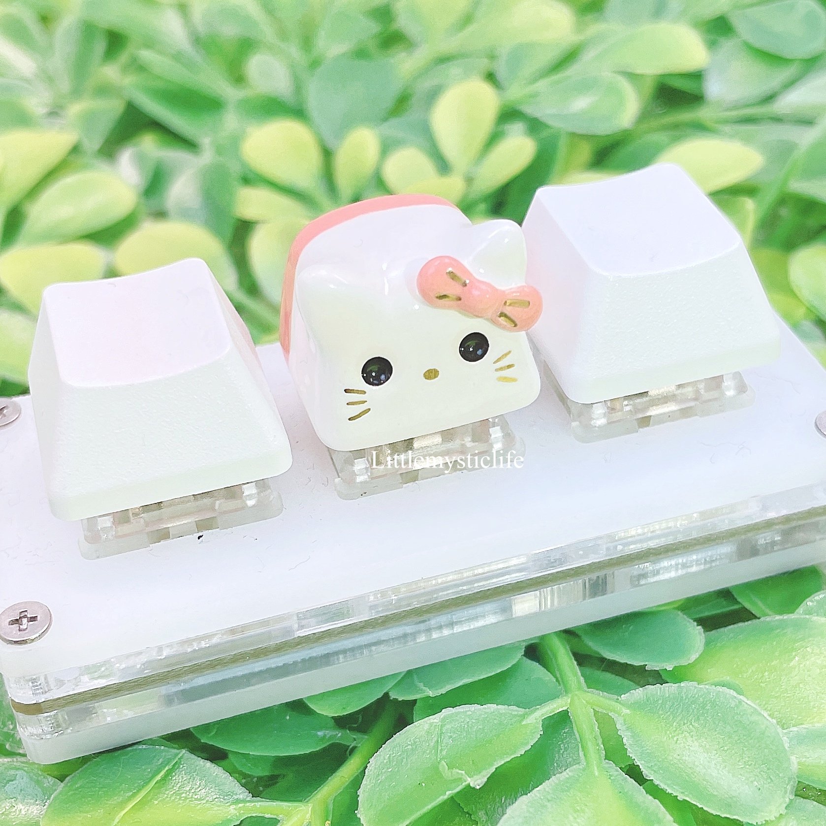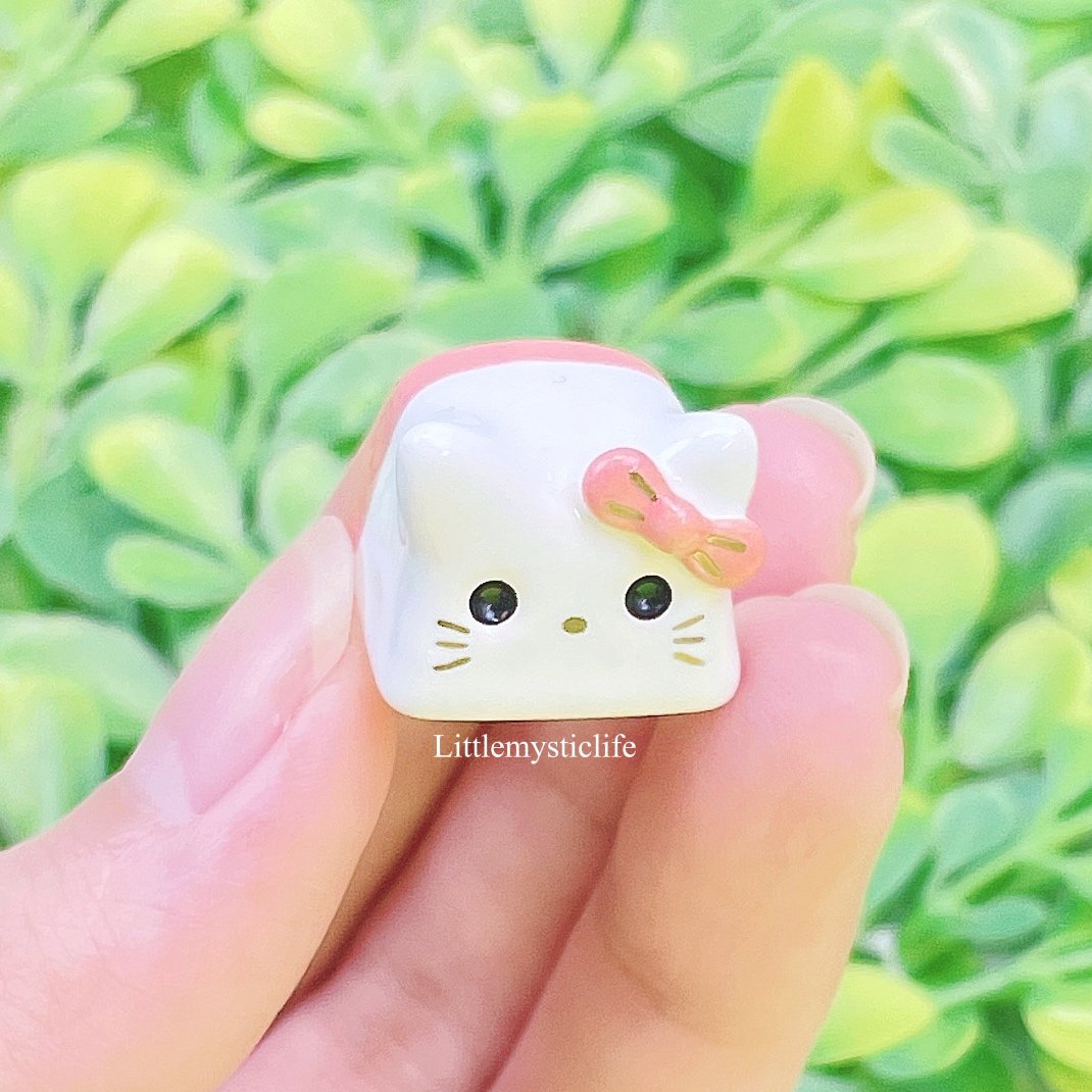 Keycap kitty is made of low fire earthen clay and Duncan underglaze for ceramic. In order to achieve the final looking pieces, I put a lot of time and care into sculpting, glazing, and firing my pieces at the right temperature. Delicate 22k gold details are painted by hand in these pieces for elegant and shiny looking. All my pieces are very small (about as big as your thumb), please handle them with care.