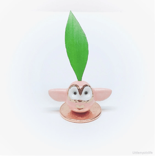pink owl ceramic figurine is made of low fire earthen clay and Duncan underglaze for ceramic. In order to achieve the final looking pieces, I put a lot of time and care into sculpting, glazing, and firing my pieces at the right temperature. Delicate 22k gold details are painted by hand in these pieces for elegant and shiny looking. All my pieces are very small (about as big as your thumb), please handle them with care.