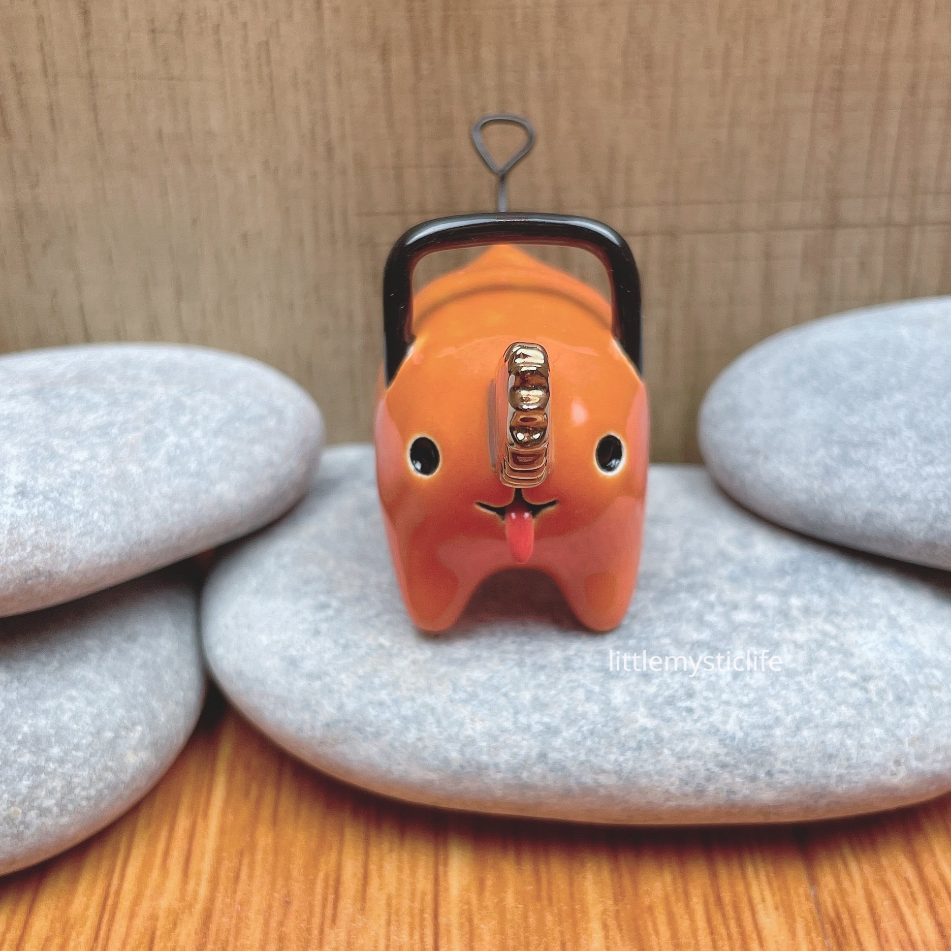 pochita ceramic figurine is made of low fire earthen clay and Duncan underglaze for ceramic. In order to achieve the final looking pieces, I put a lot of time and care into sculpting, glazing, and firing my pieces at the right temperature. Delicate 22k gold details are painted by hand in these pieces for elegant and shiny looking. Please handle them with care.
