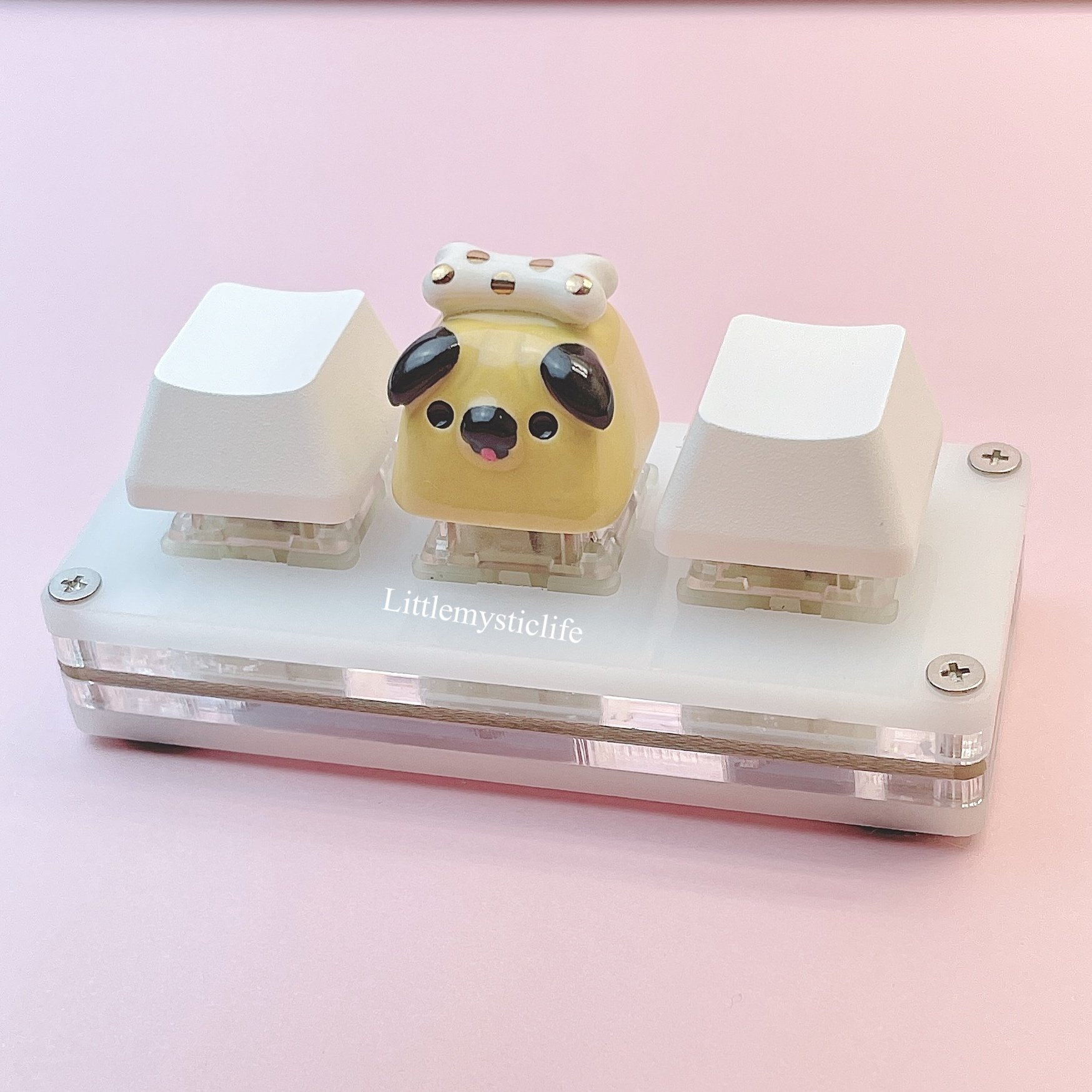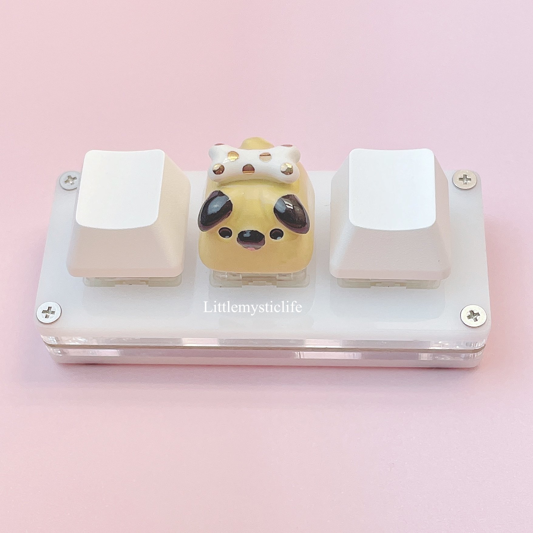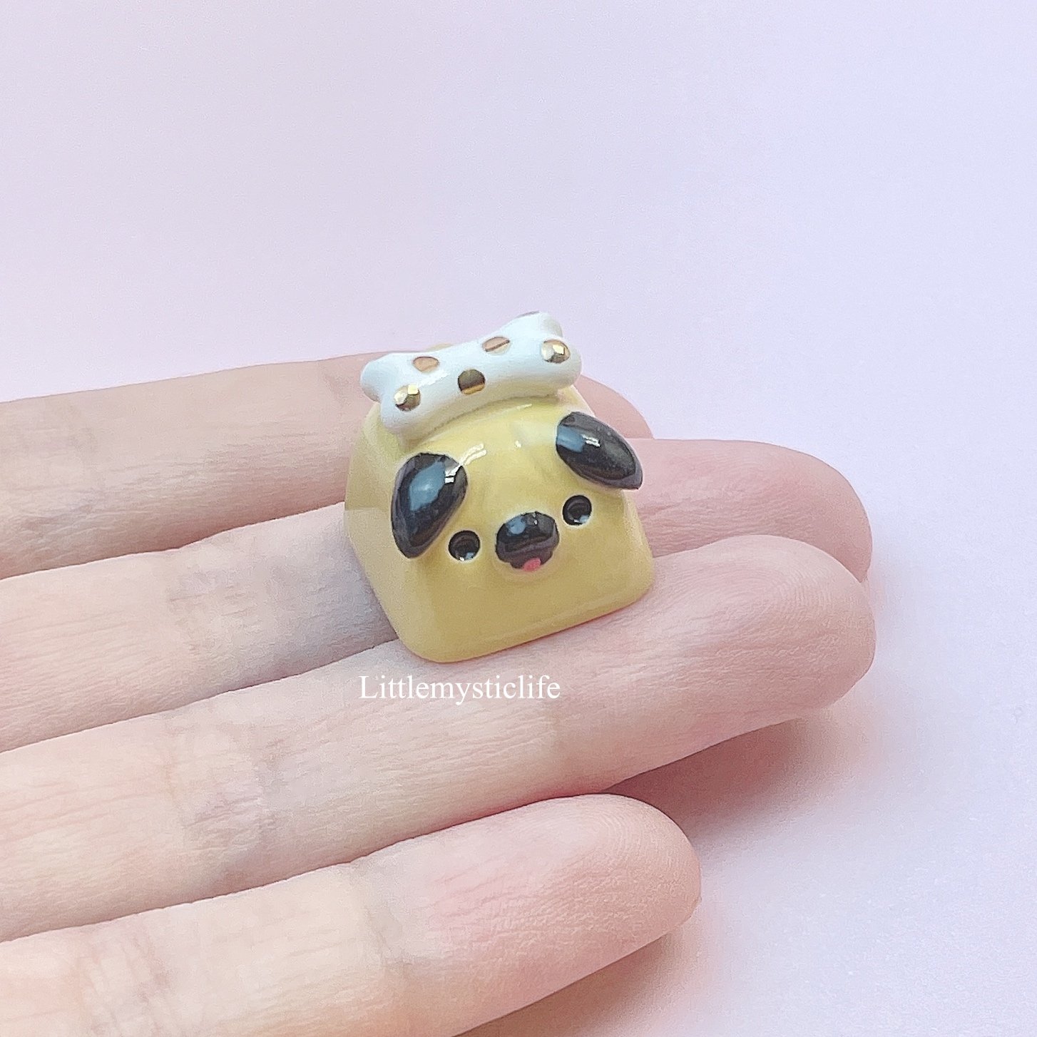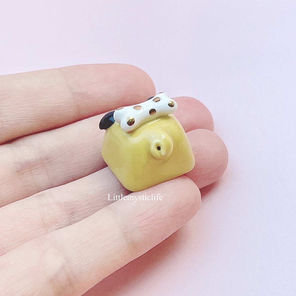 Keycap totoro is made of low fire earthen clay and Duncan underglaze for ceramic. In order to achieve the final looking pieces, I put a lot of time and care into sculpting, glazing, and firing my pieces at the right temperature. Delicate 22k gold details are painted by hand in these pieces for elegant and shiny looking. All my pieces are very small (about as big as your thumb), please handle them with care.