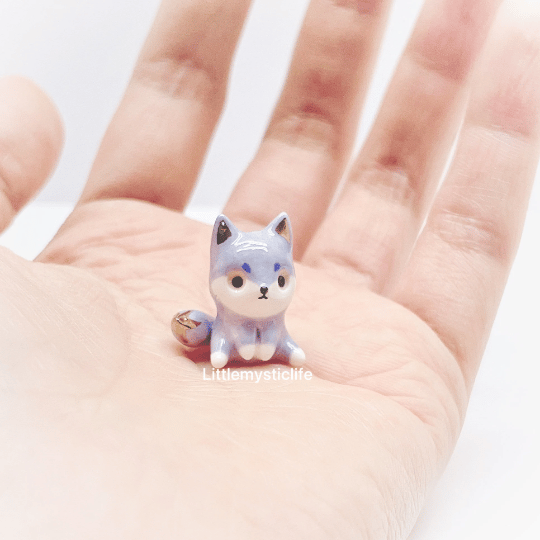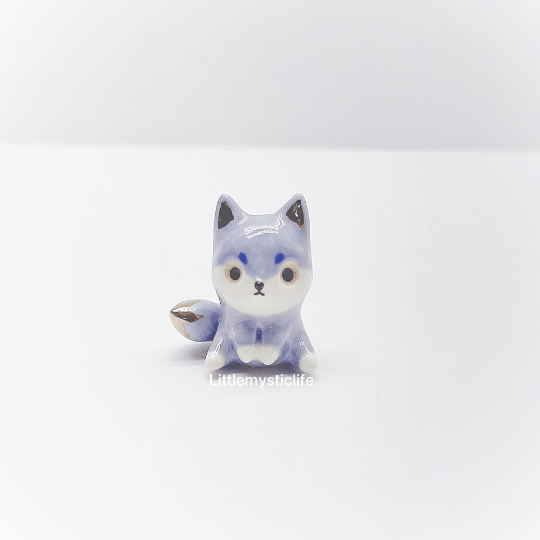 purple wolf figurine is made of low fire earthen clay and Duncan underglaze for ceramic. In order to achieve the final looking pieces, I put a lot of time and care into sculpting, glazing, and firing my pieces at the right temperature. Delicate 22k gold details are painted by hand in these pieces for elegant and shiny looking. All my pieces are very small (about as big as your thumb), please handle them with care.