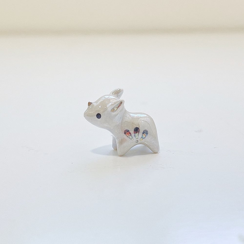 Rhino ceramic figurine is made of low fire earthen clay and Duncan underglaze for ceramic. In order to achieve the final looking pieces, I put a lot of time and care into sculpting, glazing, and firing my pieces at the right temperature. Delicate 22k gold details are painted by hand in these pieces for elegant and shiny looking. My pieces are very small (about as big as your thumb), please handle them with care.