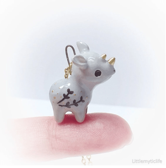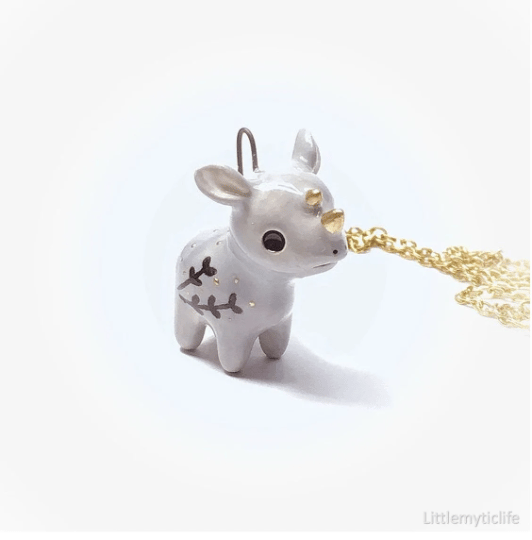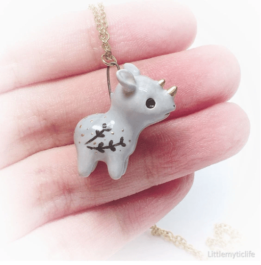 _Rhino ceramic necklace is made of low fire earthen clay and Duncan underglaze for ceramic. In order to achieve the final looking pieces, I put a lot of time and care into sculpting, glazing, and firing my pieces at the right temperature. Delicate 22k gold details are painted by hand in these pieces for elegant and shiny looking. All my pieces are very small (about as big as your thumb), please handle them with care and I recommend to take off your necklace while sleeping and showering.