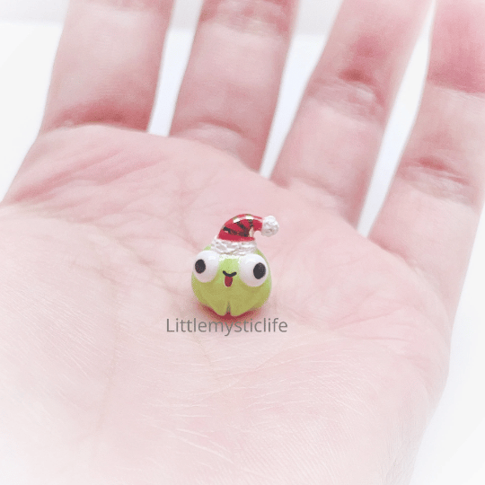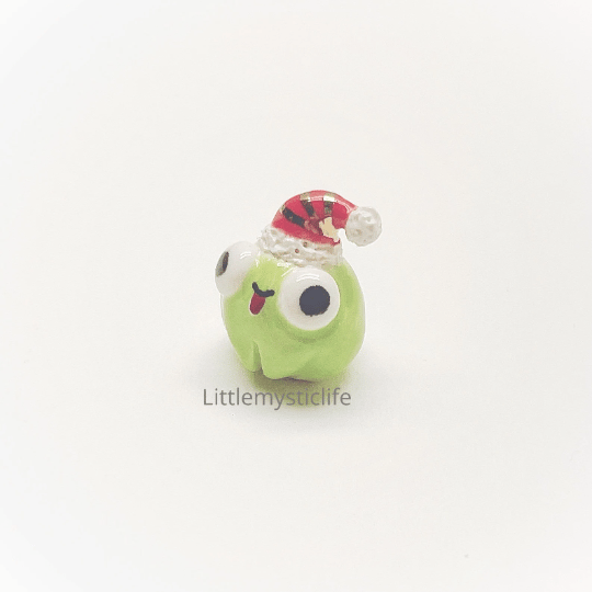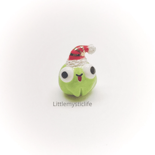 Santa frog ceramic figurine is made of low fire earthen clay and Duncan underglaze for ceramic. In order to achieve the final looking pieces, I put a lot of time and care into sculpting, glazing, and firing my pieces at the right temperature. Delicate 22k gold details are painted by hand in these pieces for elegant and shiny looking. All my pieces are very small (about as big as your thumb), please handle them with care.