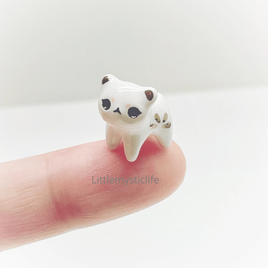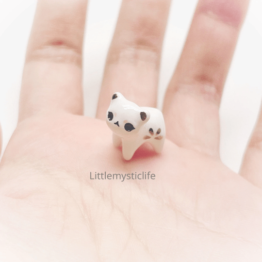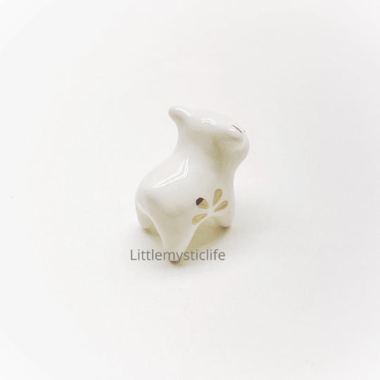 Leaf bear ceramic figurine is made of low fire earthen clay and Duncan underglaze for ceramic. In order to achieve the final looking pieces, I put a lot of time and care into sculpting, glazing, and firing my pieces at the right temperature. Delicate 22k gold details are painted by hand in these pieces for elegant and shiny looking. All my pieces are very small (about as big as your thumb), please handle them with care.