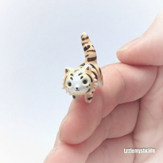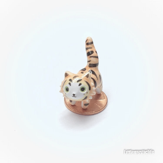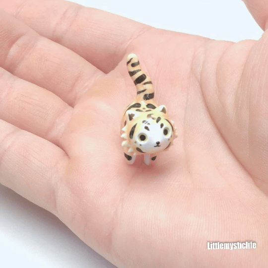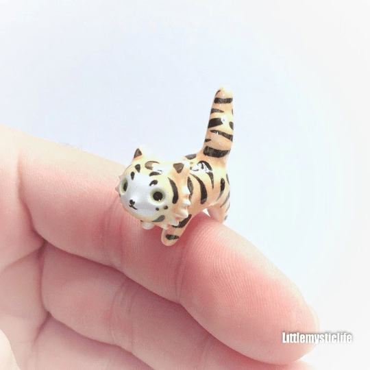 Tiger figurine is made of low fire earthen clay and Duncan underglaze for ceramic. In order to achieve the final looking pieces, I put a lot of time and care into sculpting, glazing, and firing my pieces at the right temperature. Delicate 22k gold details are painted by hand in these pieces for elegant and shiny looking. All my pieces are very small (about as big as your thumb), please handle them with care.