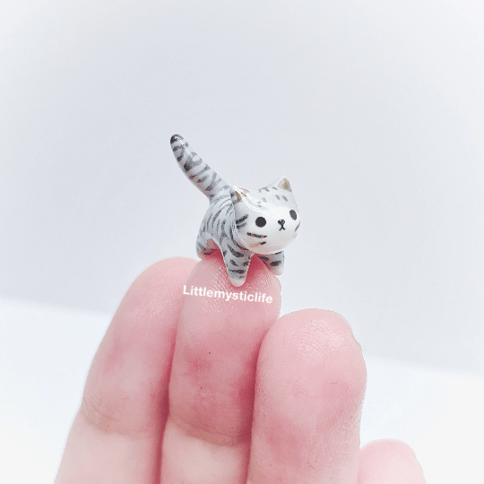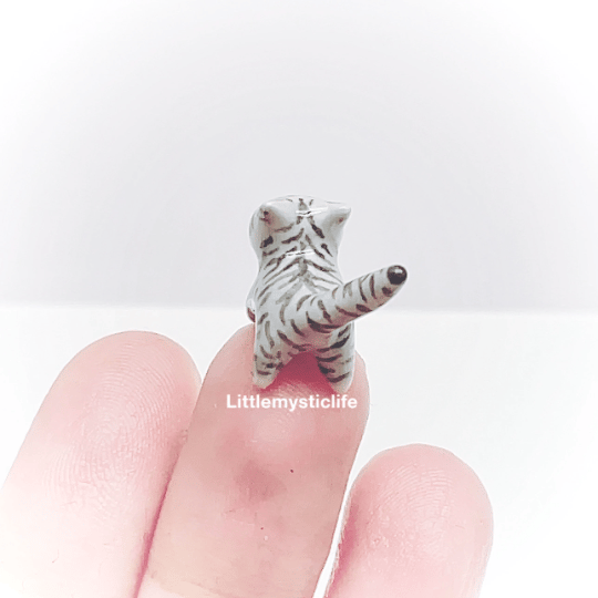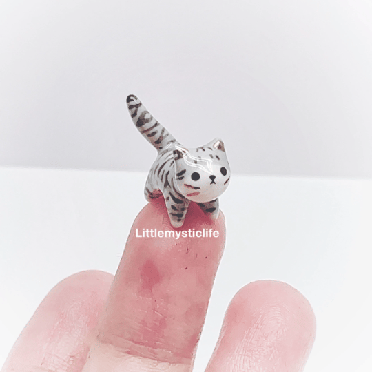 Kitty ceramic figurine is made of low fire earthen clay and Duncan underglaze for ceramic. In order to achieve the final looking pieces, I put a lot of time and care into sculpting, glazing, and firing my pieces at the right temperature. Delicate 22k gold details are painted by hand in these pieces for elegant and shiny looking. All my pieces are very small (about as big as your thumb), please handle them with care.