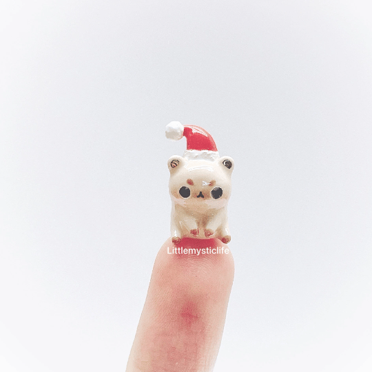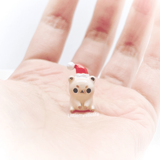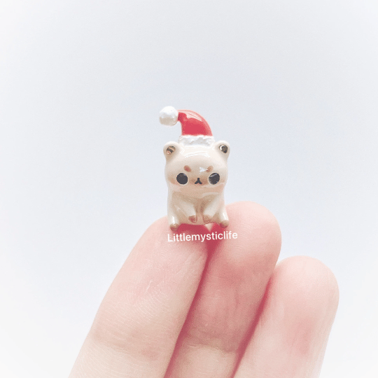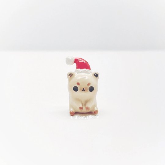 Santa bear ceramic figurine is made of low fire earthen clay and Duncan underglaze for ceramic. In order to achieve the final looking pieces, I put a lot of time and care into sculpting, glazing, and firing my pieces at the right temperature. Delicate 22k gold details are painted by hand in these pieces for elegant and shiny looking. All my pieces are very small (about as big as your thumb), please handle them with care.