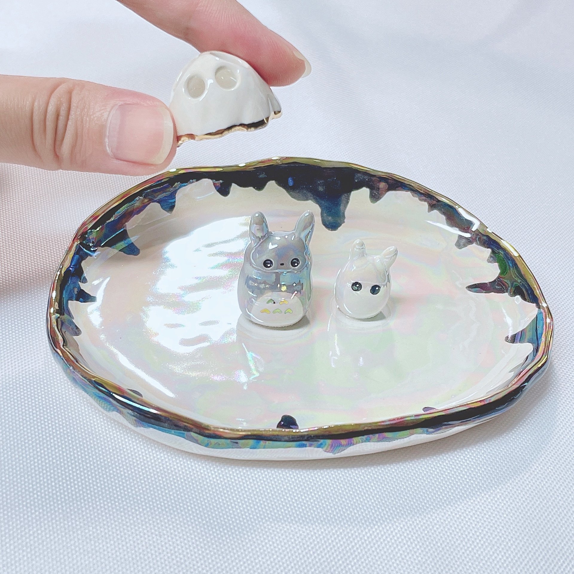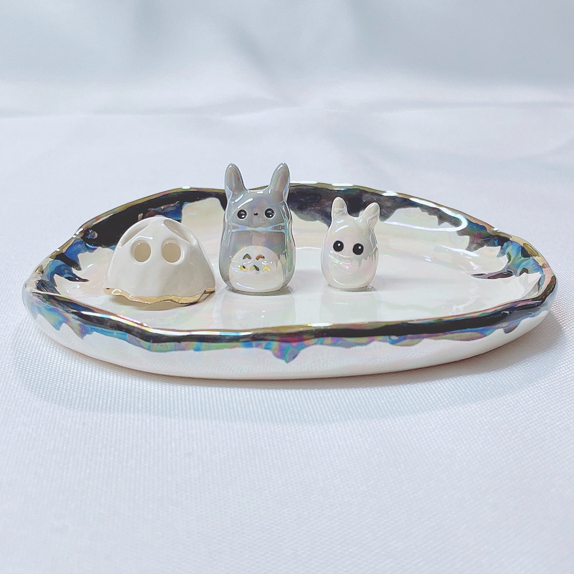Totoro with ghost mask trinket dish (4.4 inches in length)