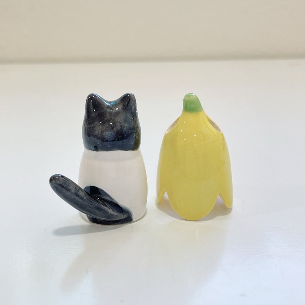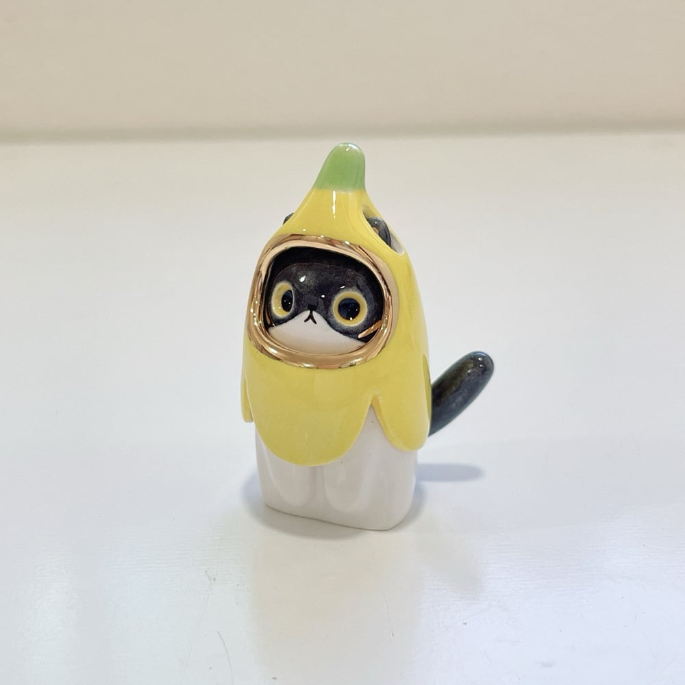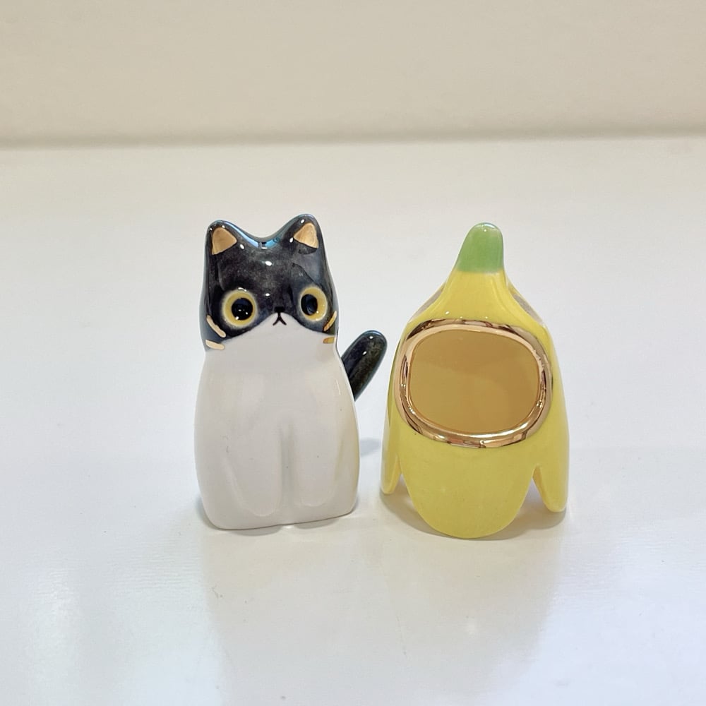 Banana cat ceramic figurine is made of low fire earthen clay and Duncan underglaze for ceramic. In order to achieve the final looking pieces, I put a lot of time and care into sculpting, glazing, and firing my pieces at the right temperature. Delicate 22k gold details are painted by hand in these pieces for elegant and shiny looking. Please handle them with care.