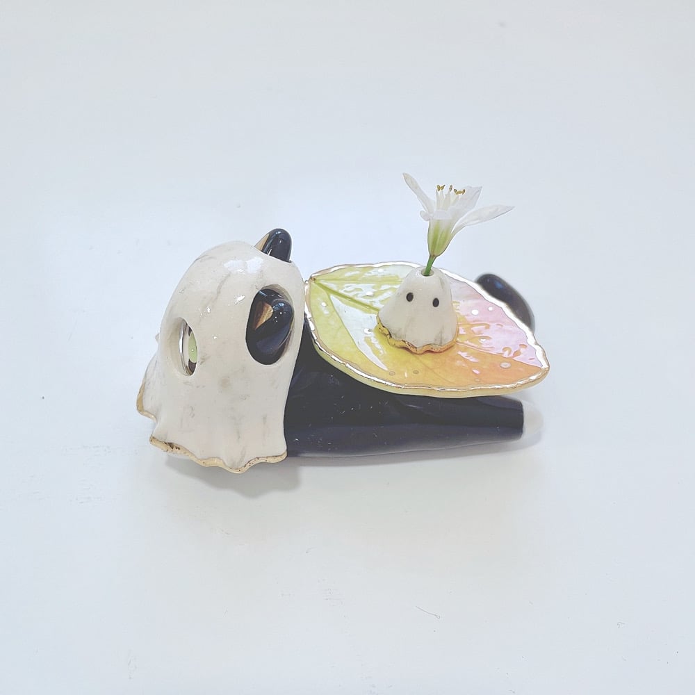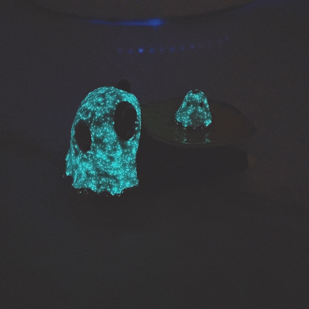 Tuxedo cat Glow in dark ghost ring holder ceramic figurine is made of low fire earthen clay and Duncan underglaze for ceramic. Recharge glow light everyday under the sun for 40 mins or under UV light for 10 mins. Glow light can hold 15-20 mins each recharge. In order to achieve the final looking pieces, I put a lot of time and care into sculpting, glazing, and firing my pieces at the right temperature. Delicate 22k gold details are painted by hand in these pieces for elegant and shiny looking. Please handle them with care.